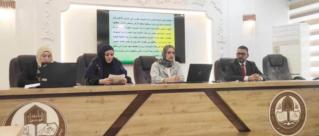 نوقشت في قسم البستنة وهندسة الحدائق في كلية الزراعة والغابات بجامعة الموصل رسالة الماجستير الموسومة (تأثير الرش بالباكلوبترازول والفاتوكوفيرول في نمو نبات عين البزون تحت مستويات مختلفه من السعة الحقلية ) اليوم الخميس الموافق (٢٧ / ١١/ ٢٠٢٥) تقدمت بها الطالبة مريم ابراهيم عبد الغني، وقد ترأس لجنة المناقشة السيد عميد كلية الزراعة والغابات الاستاذ الدكتور علي فاروق المعاضيدي وعضوية كل من الاستاذ الدكتور علاء هاشم يونس والاستاذ المساعد الدكتورة جيهان يحيى قاسم وبإشراف كل من الأستاذ الدكتورة اسماء محمد عادل والمدرس الدكتور احمد خير الدين عبدالسلام.