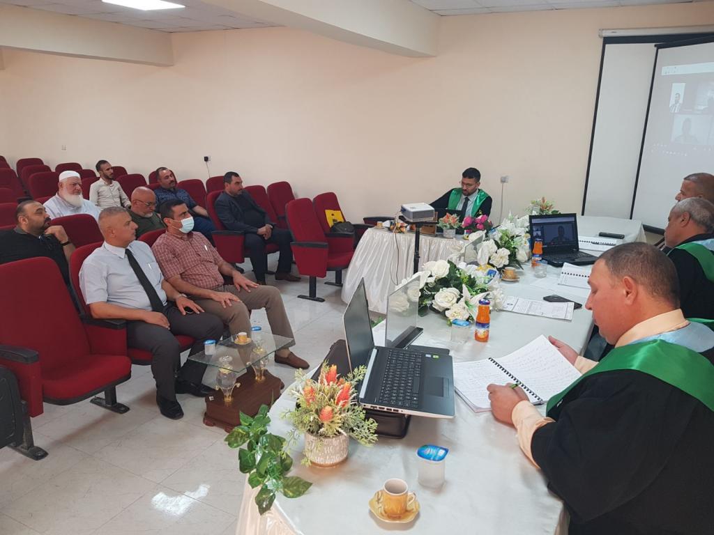 نوقشت في قسم المحاصيل الحقلية رسالة ماجستير تقدم بها الطالب احمد غانم سعيد والموسومة (تأثير طرق اضافة حامض الهيوميك ومسافات الزراعة في نمو وحاصل الكتان تحت الظروف الديمية) حضر جانب منها السيد عميد الكلية الاستاذ الدكتور محمد يونس العلاف.