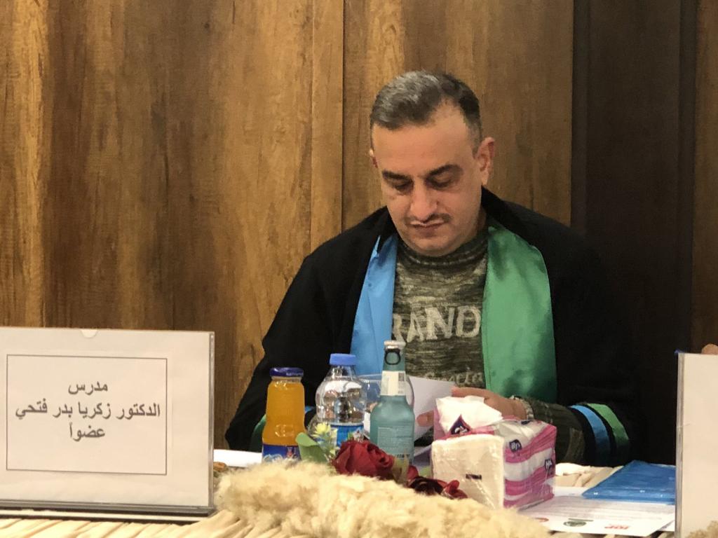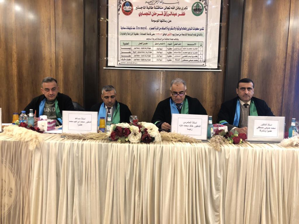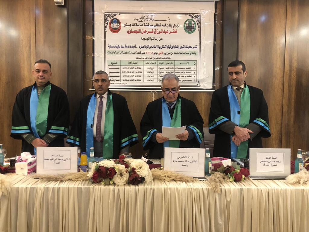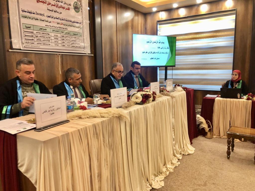 هذا وترأس لجنة المناقشة الاستاذ الدكتور خالد محمد داؤد وعضوية الاستاذ المساعد الدكتور محمد ابراهيم محمد والدكتور زكريا بدر فتحي وباشراف الاستاذ الدكتور محمد صبحي مصطفى.