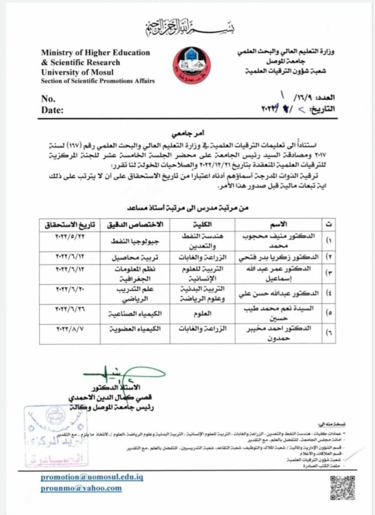هذا وترأس لجنة المناقشة الاستاذ الدكتور خالد محمد داؤد وعضوية الاستاذ المساعد الدكتور محمد ابراهيم محمد والدكتور زكريا بدر فتحي وباشراف الاستاذ الدكتور محمد صبحي مصطفى.
