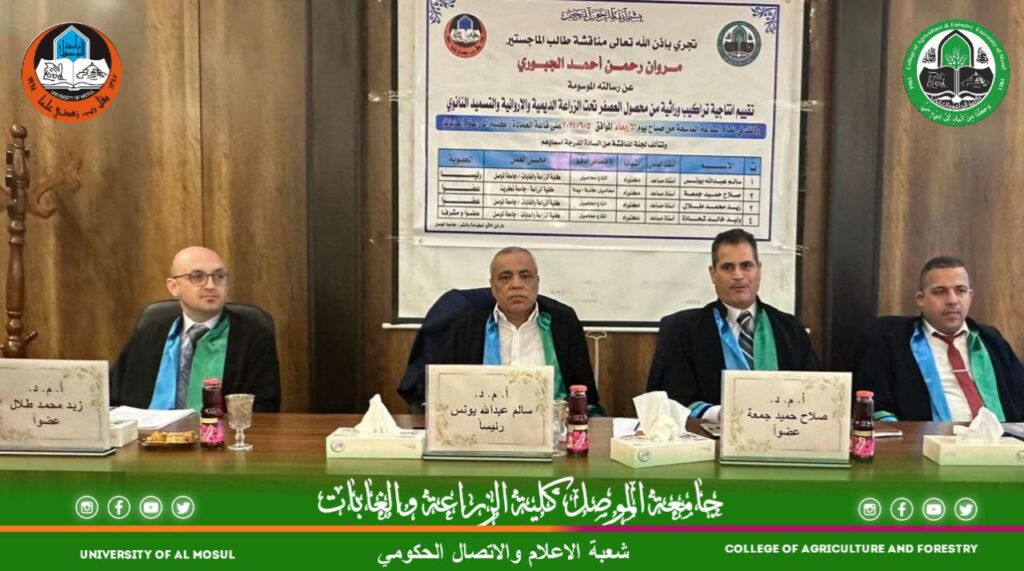 ناقش قسم المحاصيل الحقلية في كلية الزراعة والغابات بجامعة الموصل رسالة ماجستير عـن تأثير أنواع جديدة من مبيدات الأدغال في نمو وحاصل صنفين من حنطة الخبز