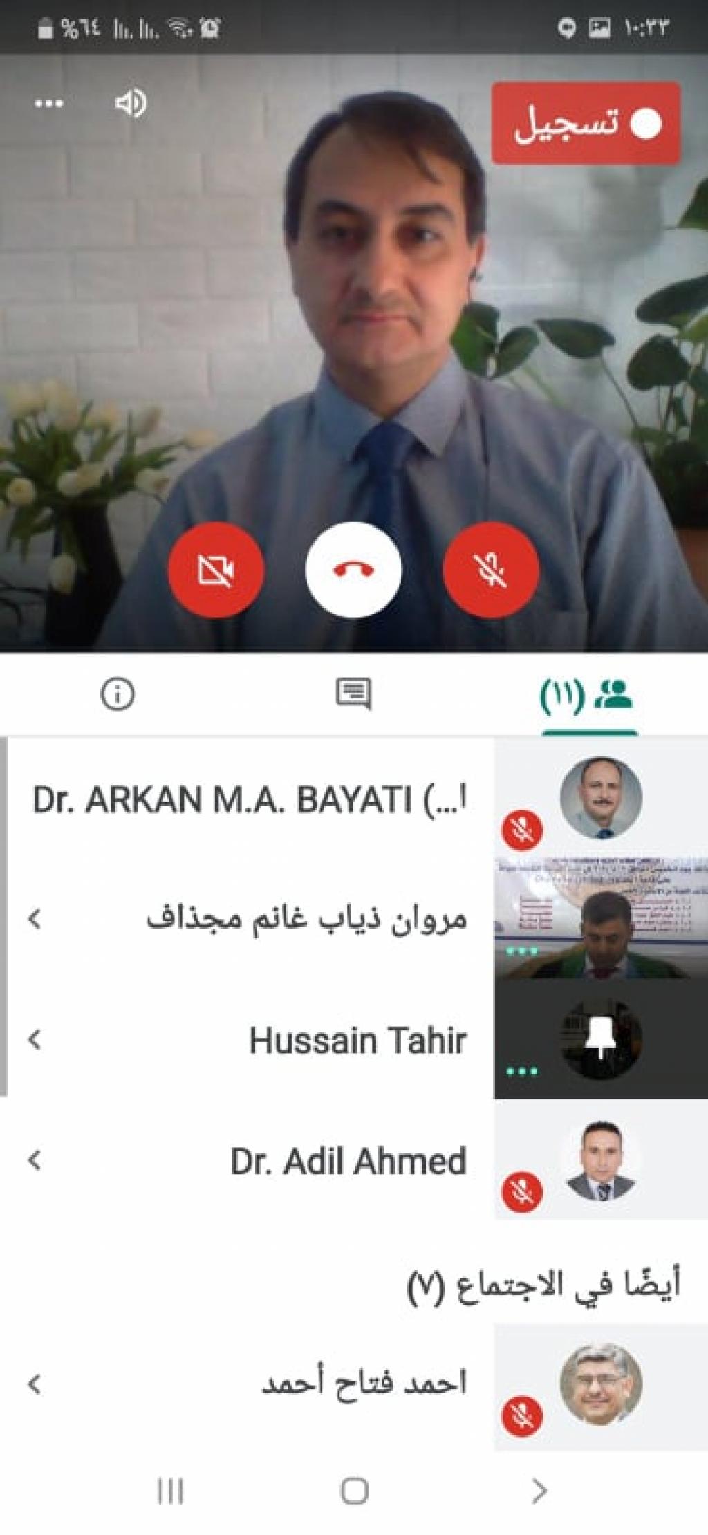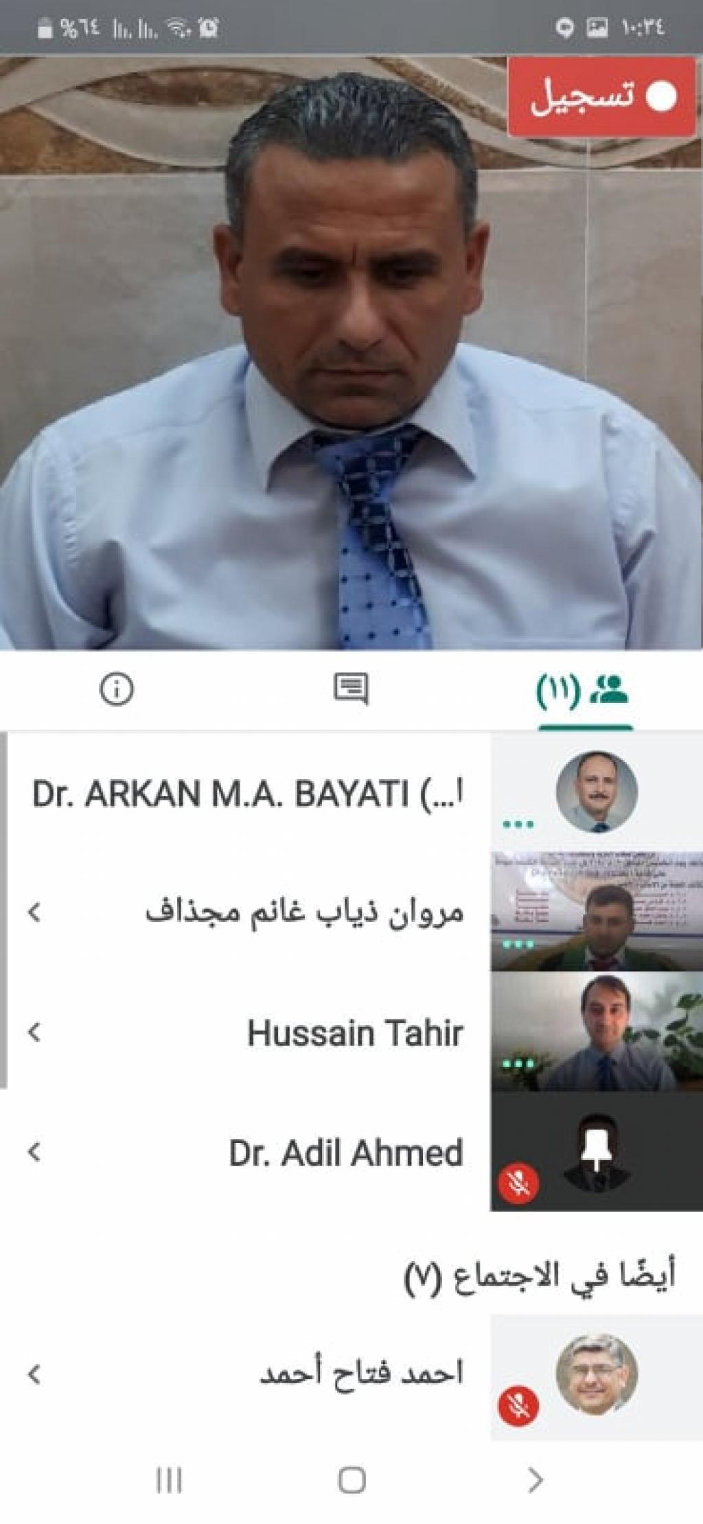 بحضور السيد عميد الكلية الدكتور محمد يونس العلاف ومعاونه للشؤون العلمية وعبر المنصة الالكترونية google meet نوقشت رسالة ماجستير في قسم المكائن والآلات الزراعية للطالب مروان ذياب غانم عن رسالته الموسومة )دراسة تأثير نوعين من المطارح التقليدية والمشرحة المصنعة محليا للمحراث القلاب في بعض صفات التربة ومتطلبات الطاقة) وقد تألفت لجنة المناقشة من السادة :