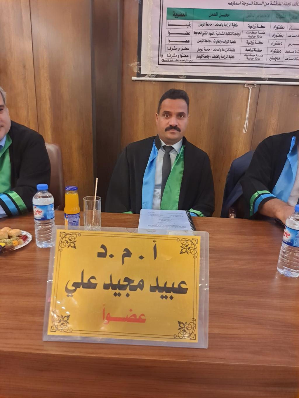 مناقشة رسالة ماجستير في قسم المكائن والالات الزراعية.