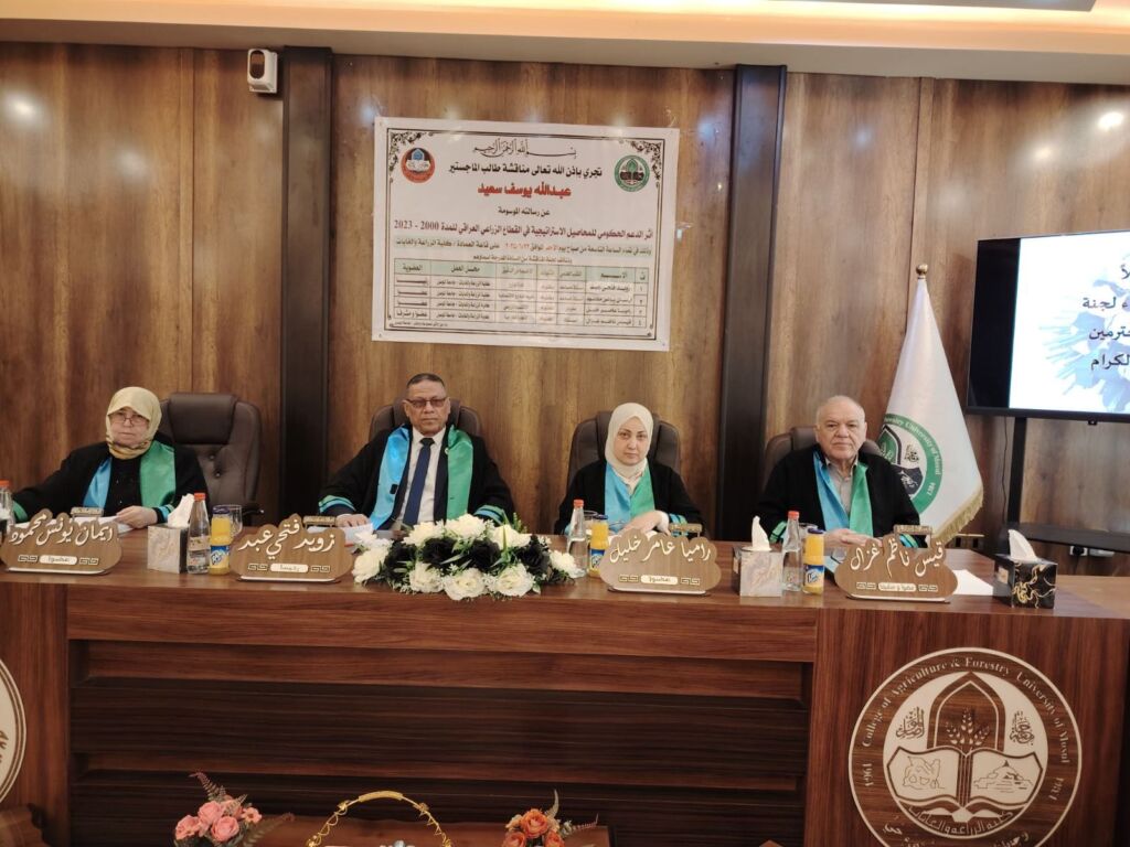 مناقشة رسالة ماجستير في قسم المكائن والالات الزراعية في كلية الزراعة والغابات.