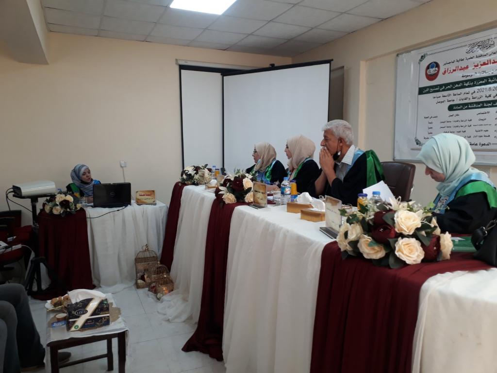 هذا وترأس لجنة المناقشة الأستاذ الدكتور وليد احمد محمود وعضوية الدكتورة شيماء رياض والدكتورة نهان بهاء الدين جعفر وبأشراف الاستاذ الدكتورة سمية خلف بدوي.
