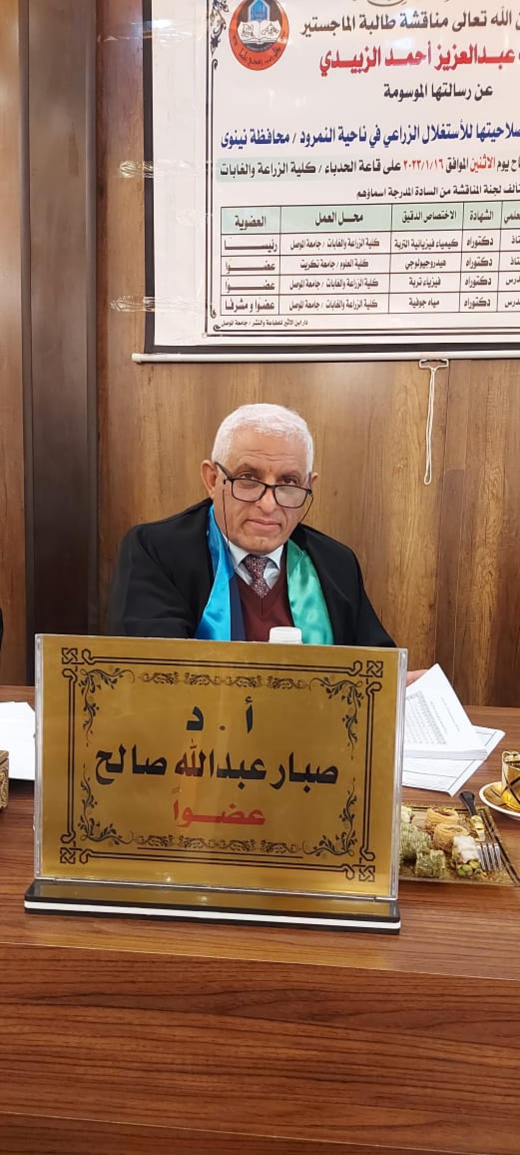 مناقشة رسالة ماجستير في قسم علوم التربة والموارد المائية.