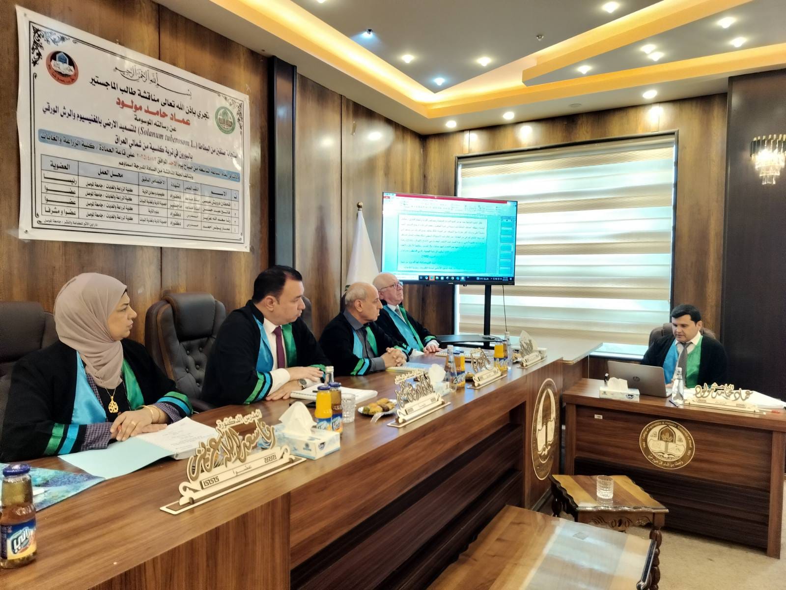 نوقشت في قسم علوم التربة والموارد المائية في كلية الزراعة والغابات بجامعة الموصل رسالة الماجستير الموسومة (إستجابة صنفين من البطاطا Solanum tuberosom L للتسميد الارضي بالغنيسيوم والرش الورقي بالبورون في تربة كلسية من شمالي العراق) اليوم الأحد الموافق (١٣ / ٤ / ٢٠٢٥) حضر جانب منها عدد من تدريسي وطلبة كليتنا.