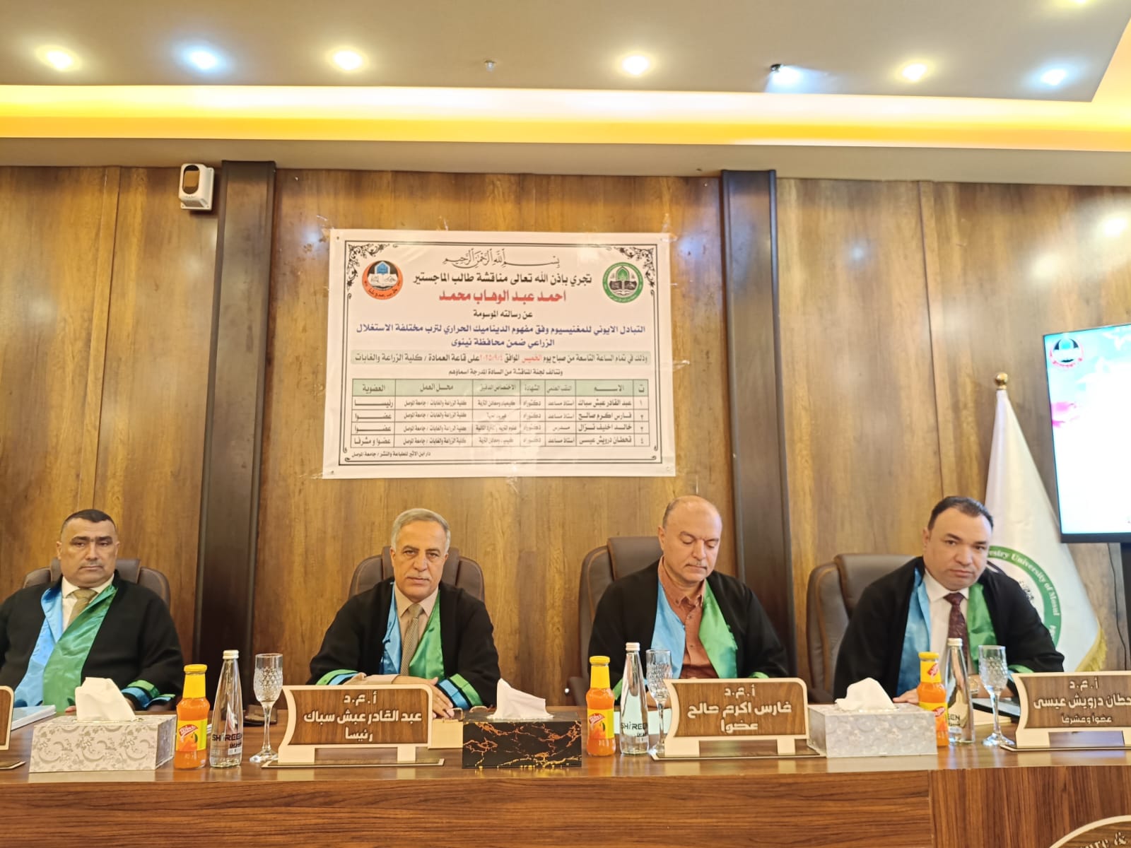مناقشة رسالة ماجستير في قسم علوم التربة والموارد المائية في كلية الزراعة والغابات.
