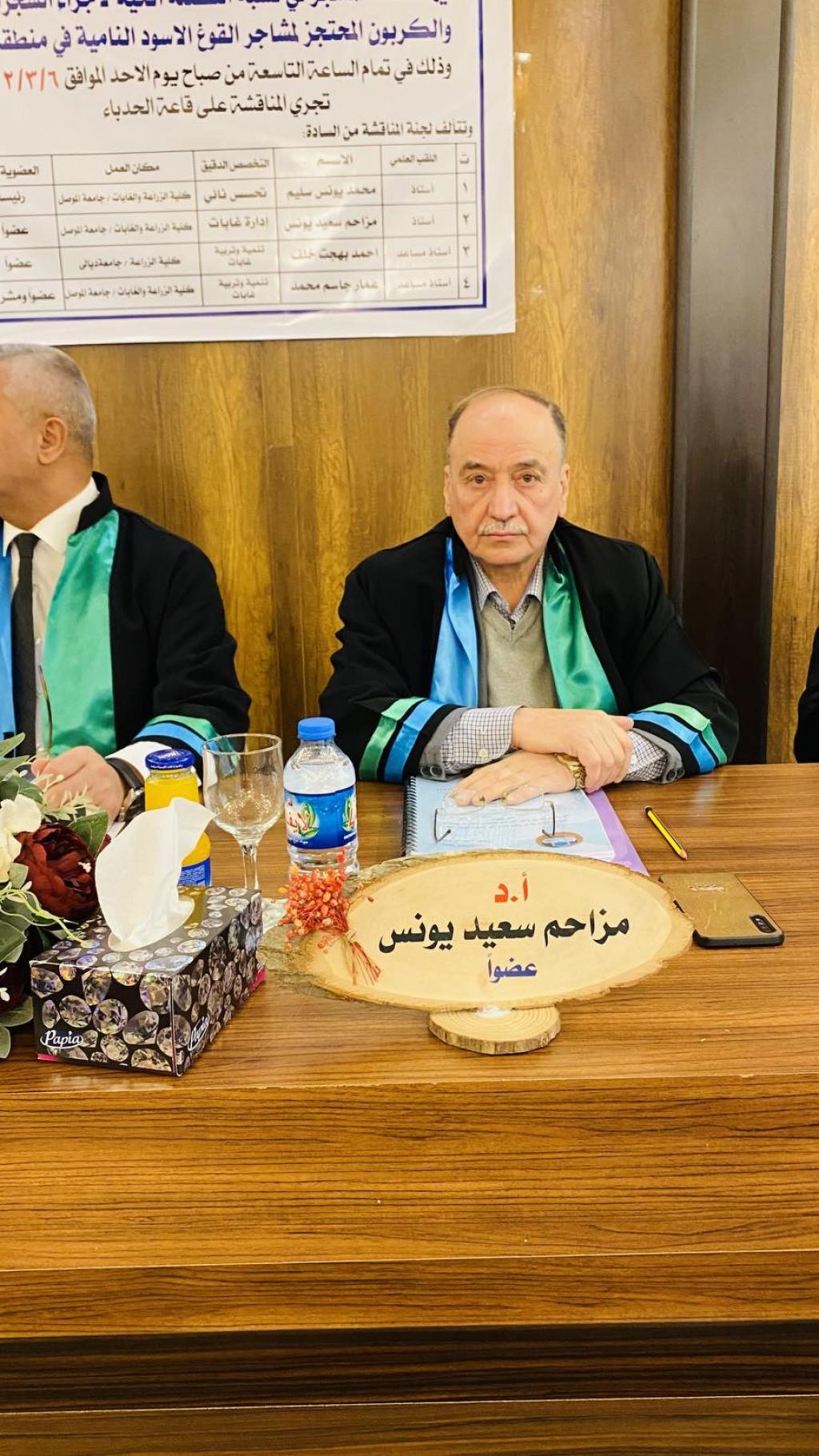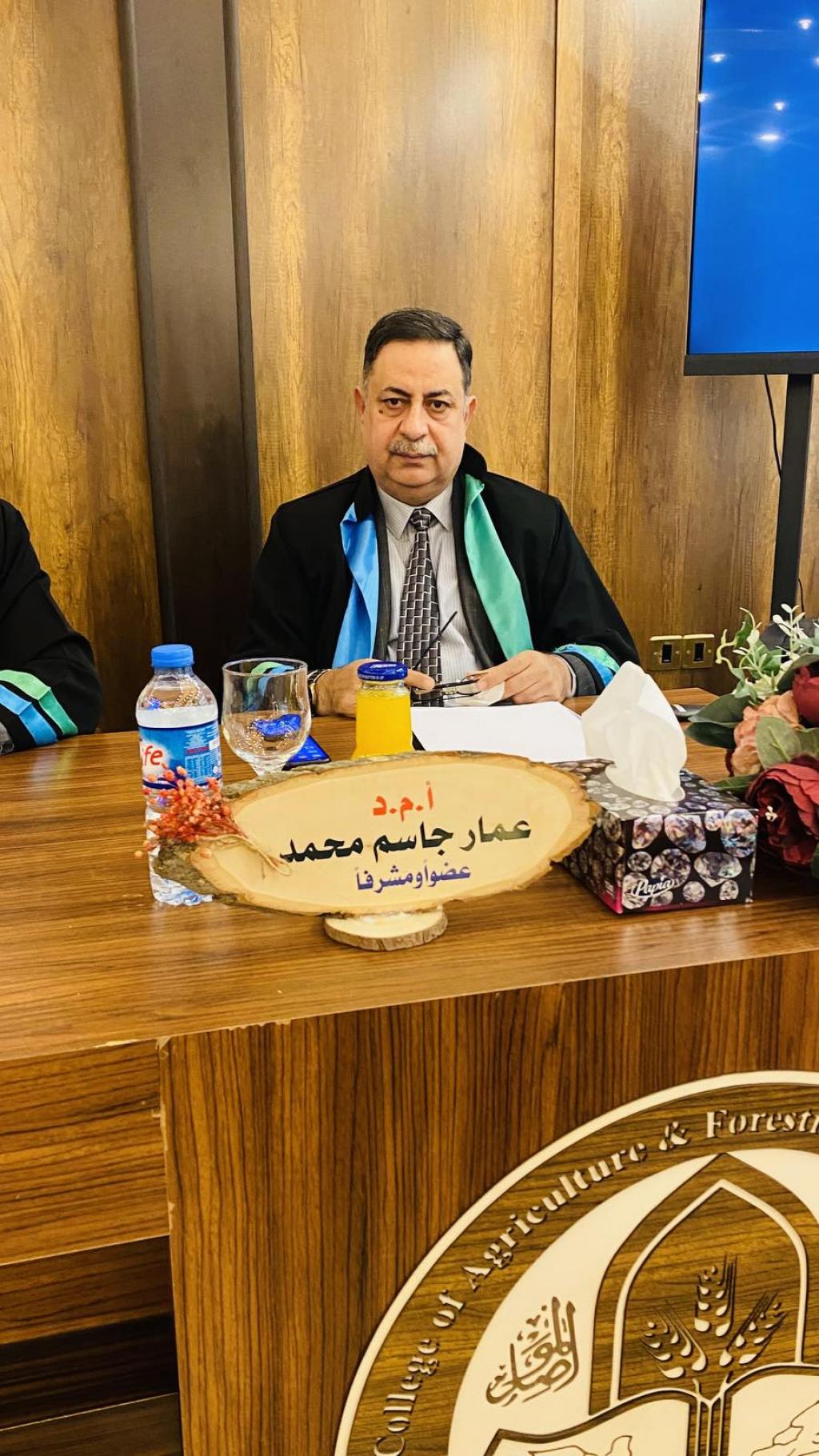 هذا وترأس لجنة المناقشة السيد عميد الكلية الاستاذ الدكتور محمد يونس العلاف وعضوية الاستاذ الدكتور مزاحم سعيد البك والاستاذ المساعد الدكتور احمد بهجت خلف وبإشراف الاستاذ المساعد الدكتور عمار جاسم اليوسف.