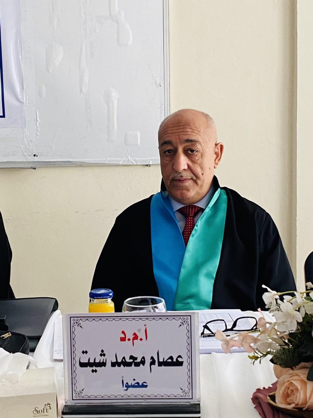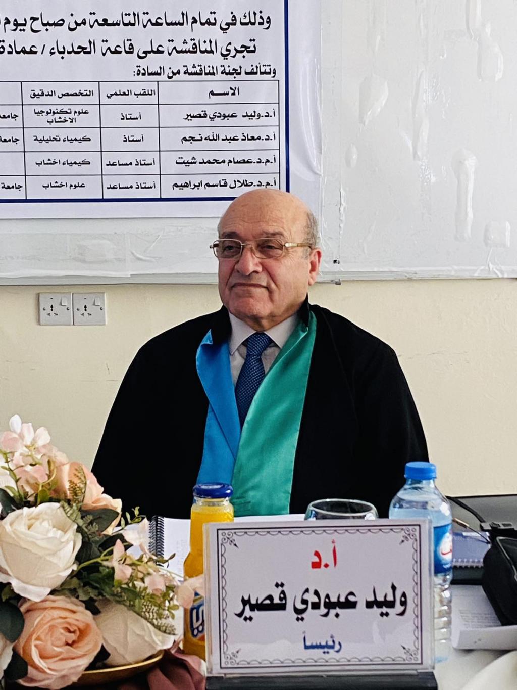 هذا وترأس لجنة المناقشة الاستاذ الدكتور وليد عبودي قصير وعضوية الاستاذ الدكتور معاذ عبدالله نجم والاستاذ المساعد الدكتور عصام محمد شيت وبإشراف الاستاذ المساعد الدكتور طلال قاسم التكاي