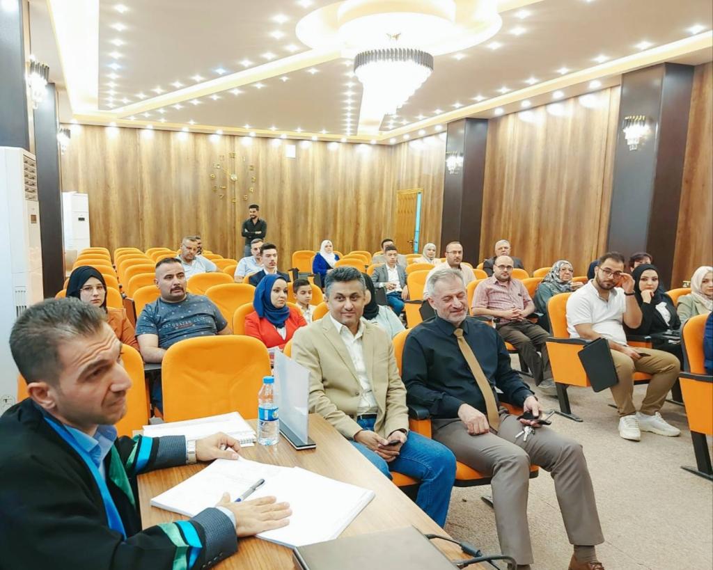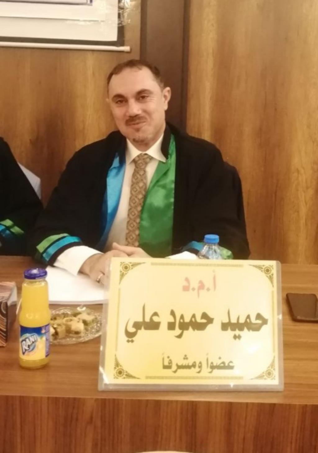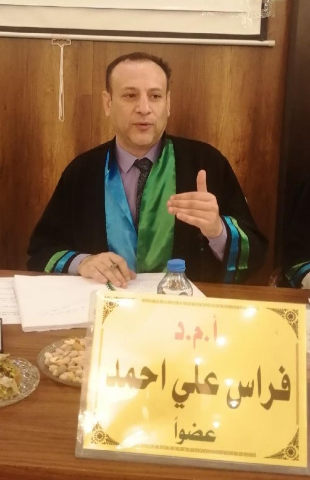 وقد تألفت لجنة مناقشة الطالب من الاستاذ الدكتور نبيل عزيز قاسم رئيساً وعضوية كل من الدكتور فراس علي احمد والدكتور علاء حميد محمد وبأشراف الدكتور حميد حمود علي.