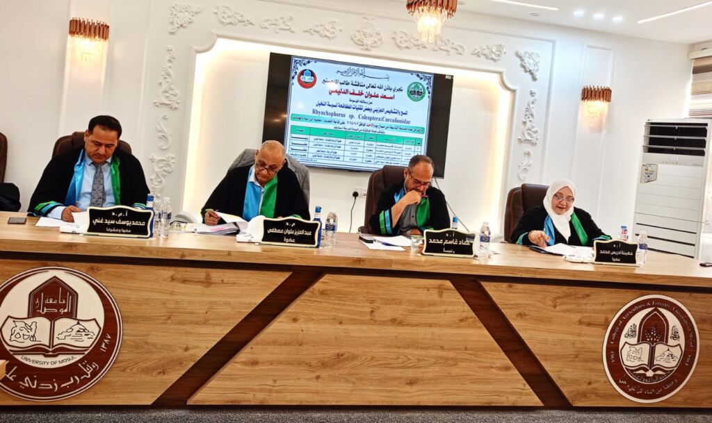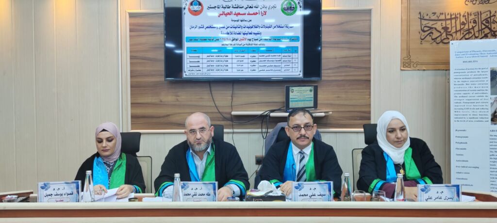 وقد ترأس لجنة المناقشة الاستاذ الدكتور حميد حمود علي وعضوية كلٌّ من الدكتور علاء حميد محمد والدكتورة بان علي احمد وبإشراف الدكتور بسام يحيى ابراهيم.