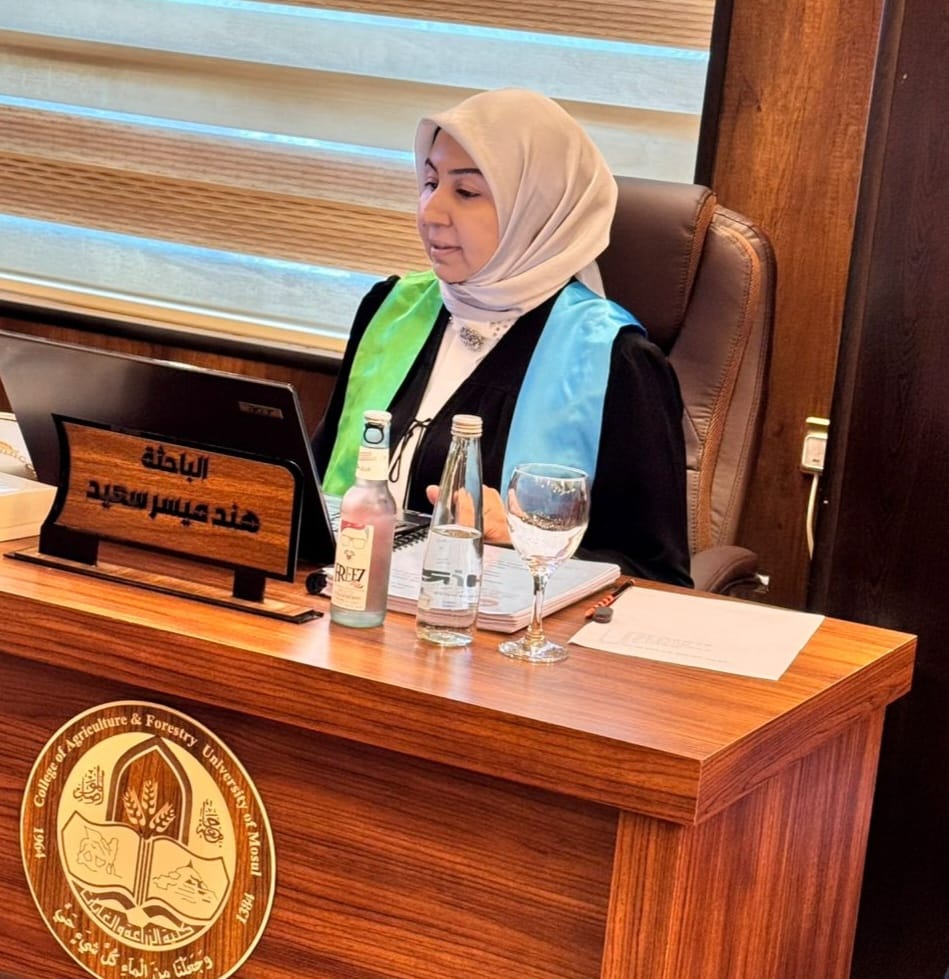 نوقشت في قسم وقاية النبات في كلية الزراعة والغابات بجامعة الموصل رسالة الماجستير الموسومة ( استخدام بكتيريا الاندوفايت Endophytic والابيفايت Epiphytic وبعض المواد الكيمياوية للسيطرة على مرض العفن الأخضر في البرتقال المتسبب عن الفطر pensillium digitatum ) اليوم الأحد الموافق (٧/ ٩) والتي تقدمت بها الطالبة ( هند ميسر سعيد ) ، تضمنت الدراسة تقييم فعالية البكتيريا الخارجية Epiphytic والداخلية Endophytic والكايتوسان وحامض الساليسيليك في السيطرة على مرض العفن الأخضر في الحمضيات الناجم عن الفطر P. digitatum