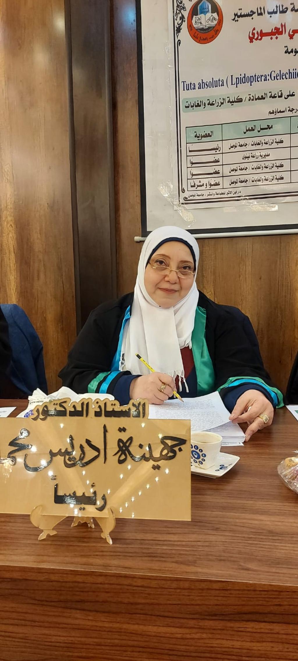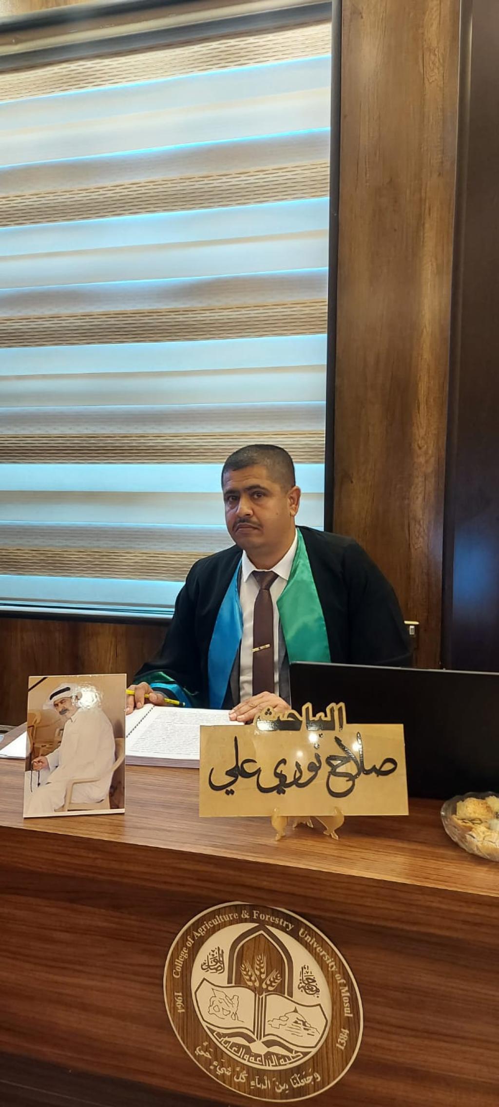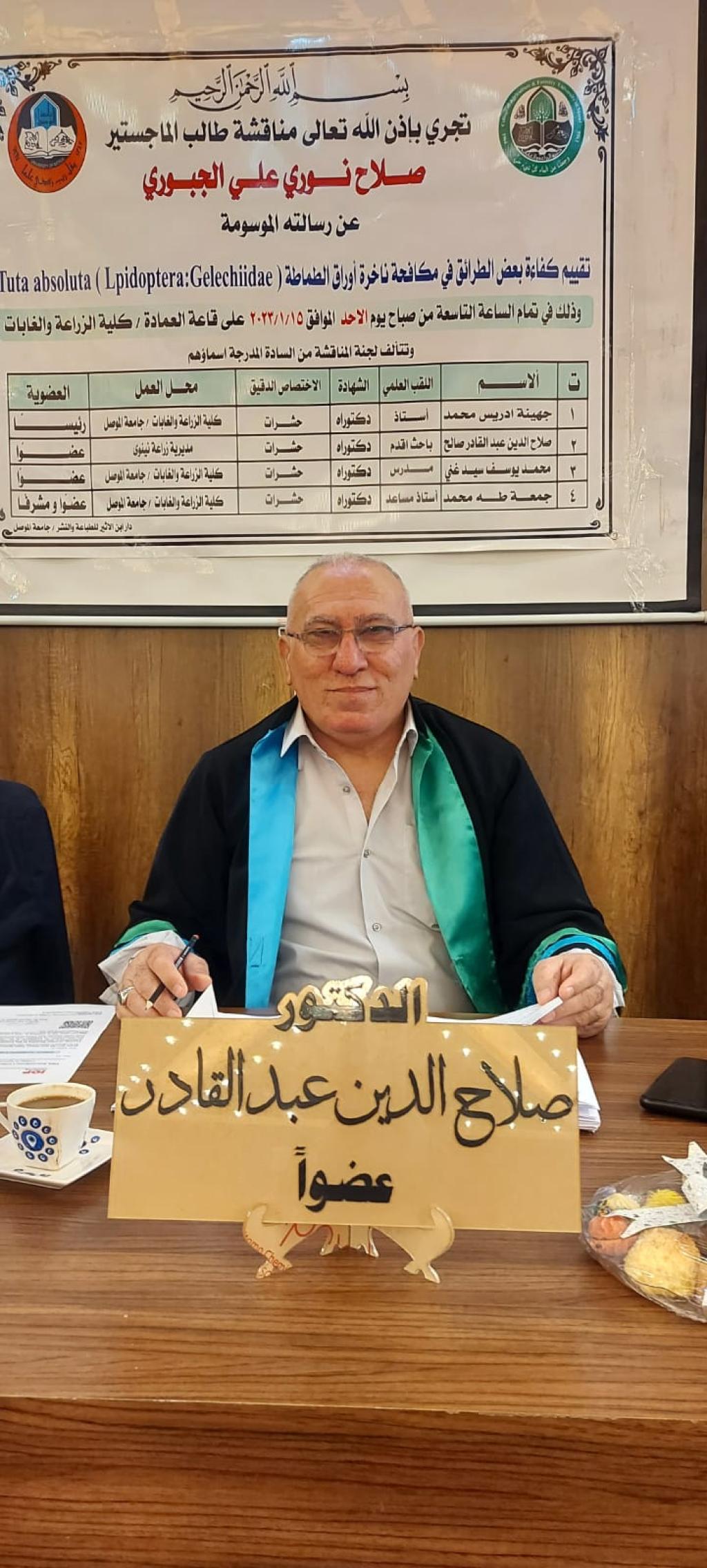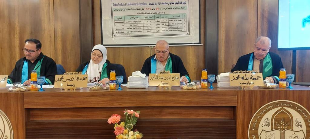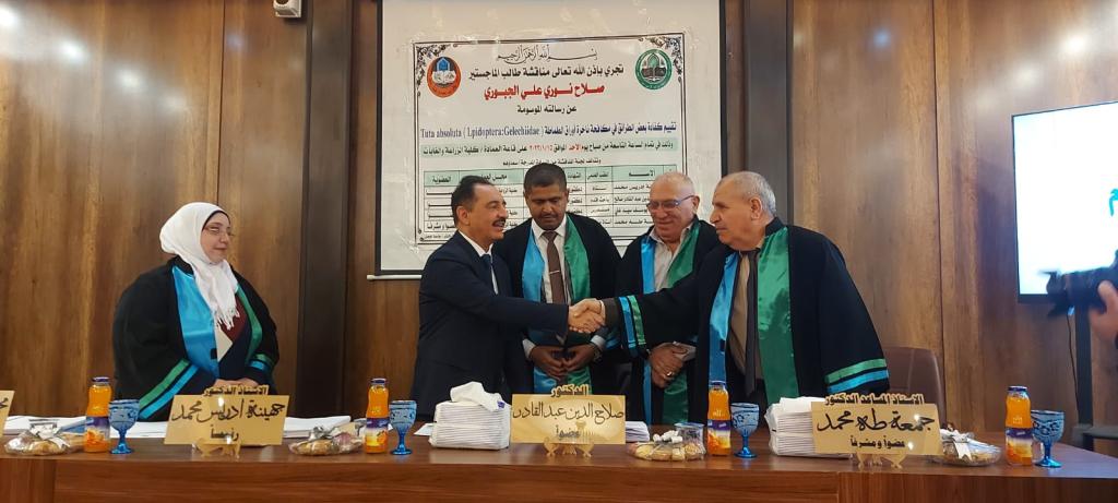 حظيت مناقشة رسالة ماجستير في قسم وقاية النبات في كليتنا بحضور السيد رئيس جامعة الموصل الاستاذ الدكتور قصي كمال الدين الاحمدي والتي تقدّم بها الباحث صلاح نوري علي والموسومة ( تأثير كفاءة بعض الطرائق في مكافحة ناخرة أوراق الطماطة ).