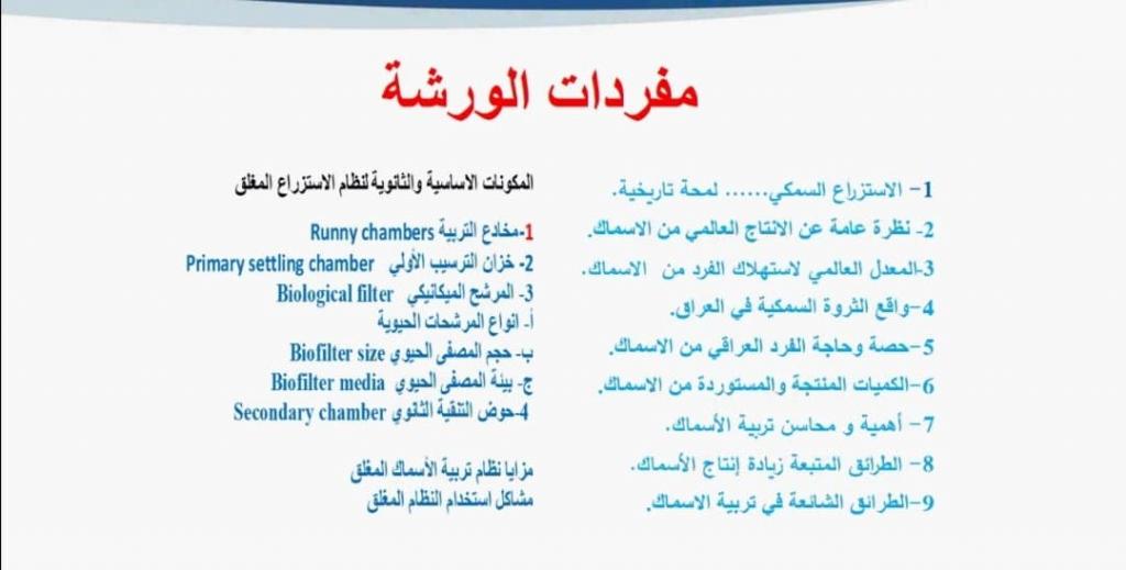 ورشة علمية الكترونية في كليتنا حول الاستزراع السمكي