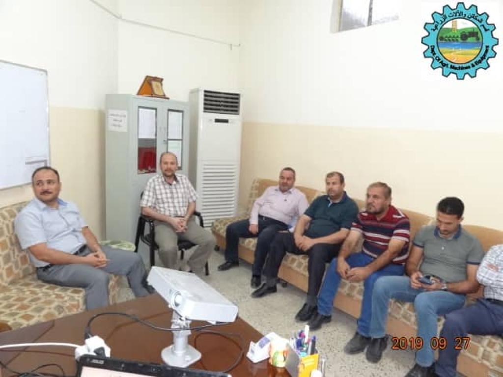 أقام قسم المكائن والالات الزراعية ورشة عمل بعنوان (وحدة التحكم الالكترونية المسيطرة على عمل المحرك) حيث حاضر فيها عدد من تدريسي القسم وهم كل مند.اركان محمد امين رئيس القسمم.م غزوان احمد دحامم.م ليث محمود يحيى