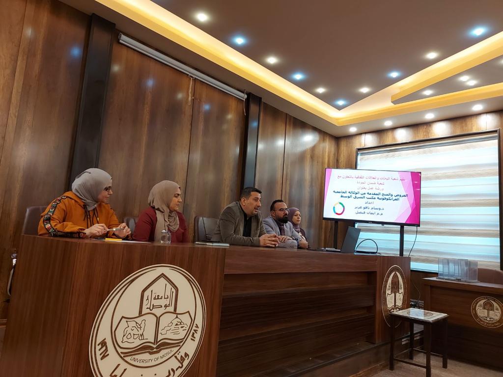 بحضور معاون العميد للشؤون العلمية الاستاذ الدكتور علي فاروق المعاضيدي اقامت شعبة البعثات والعلاقات الثقافية بالتعاون مع شعبة ضمان الجودة اليوم ورشة عمل بعنوان منح وعروض الوكالة الجامعية الفرانكوفونية حيث حاضر بالورشة كل من الدكتور وسام ياقو عزيز والمدرس المساعد ايمان فيصل . تناولت الورشة العروض والمنح المقدمة من الوكالة الفرانكفونية والية التقديم عليها من خلال الروابط الإلكترونية