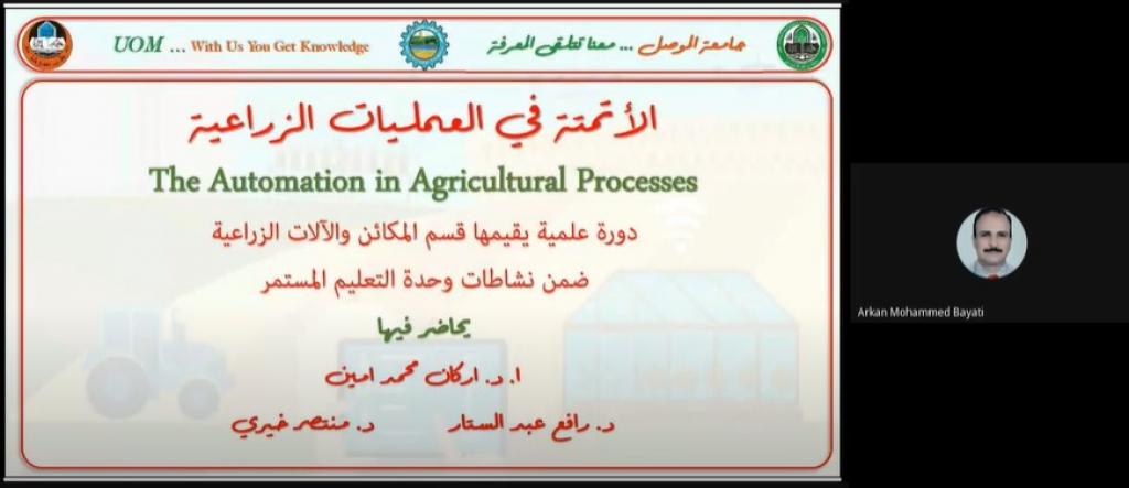 قسم المكائن والآلات الزراعية يقيم دورة تدريبية الكترونية