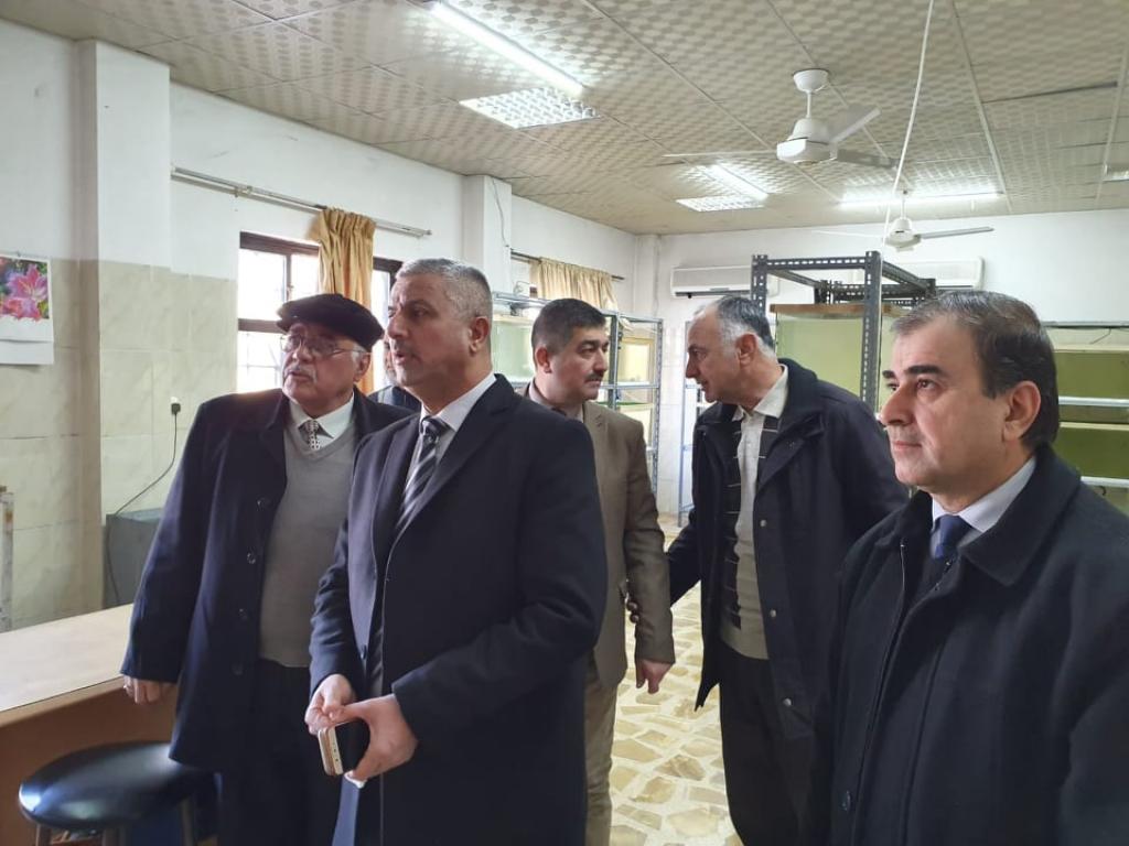 ضمن جولاته التفقدية لاقسام الكلية ومختبراته قام السيد عميد الكلية الدكتور محمد يونس العلاف يرافقه معاونيه للشؤون الادارية والعلمية بزيارة الى مختبر الاسماك التابع لقسم الانتاج الحيواني إذ كان في استقباله الدكتور مثنى الطيب رئيس القسم وقدم للسيد العميد شرحاً وافياً عن مراحل انجاز تأهيل المختبر وتهيئته لاجراء بحوث طلبة القسم ومنتسبيه