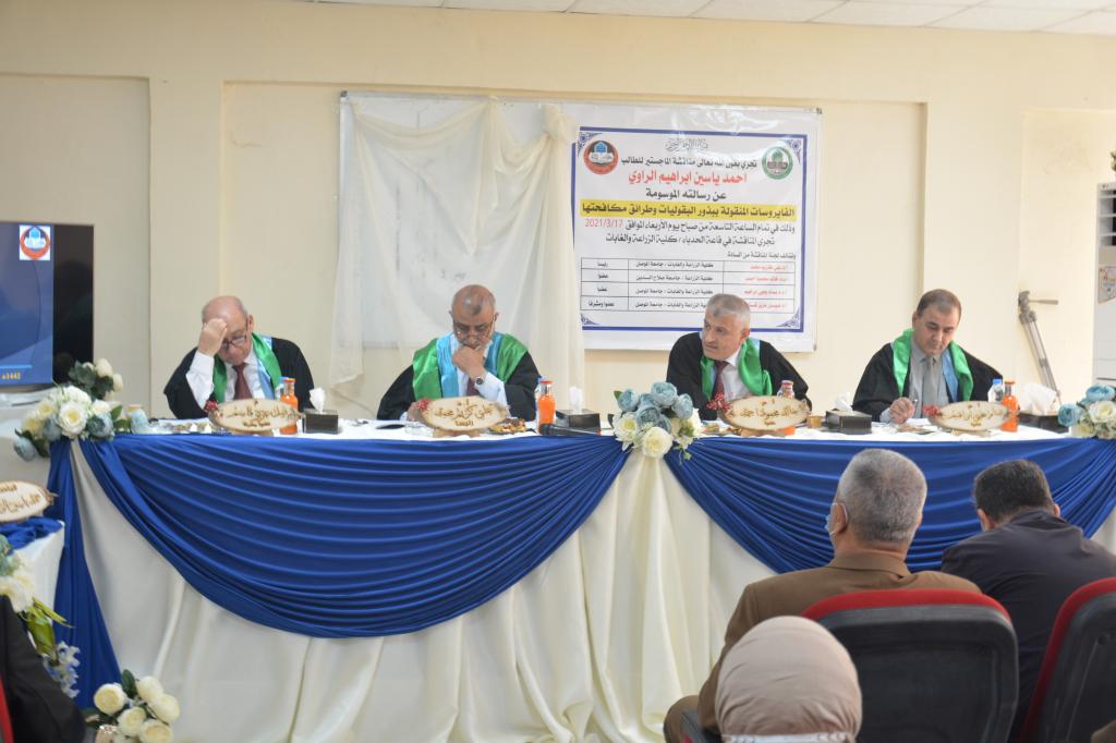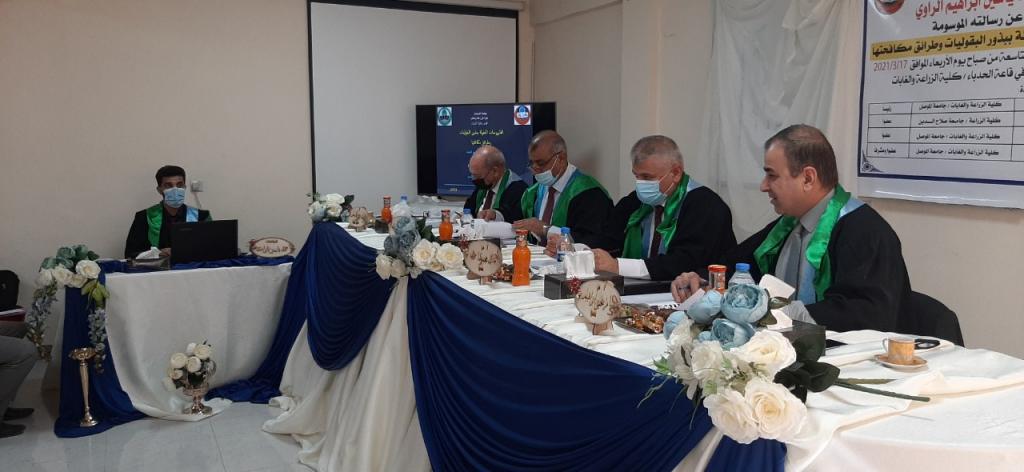 بحضور السيد مساعد رئيس الجامعة للشؤون العلمية الاستاذ الدكتور منير سالم طه والسيد عميد كلية الزراعة والغابات الدكتور محمد يونس العلاف نوقشت في قسم وقاية النبات صباح اليوم رسالة ماجستير عن الفايروسات المنقولة ببذور البقوليات وطرائق مكافحتها والتي تقدم بها الطالب احمد ياسين ابراهيم الراوي.