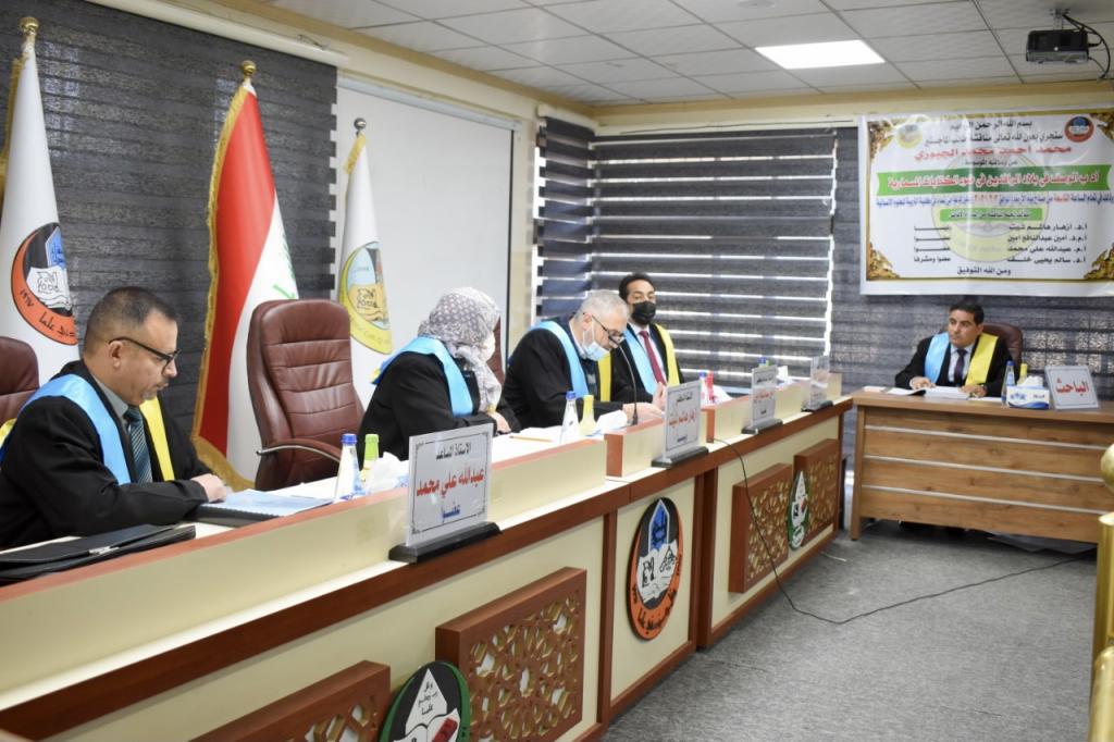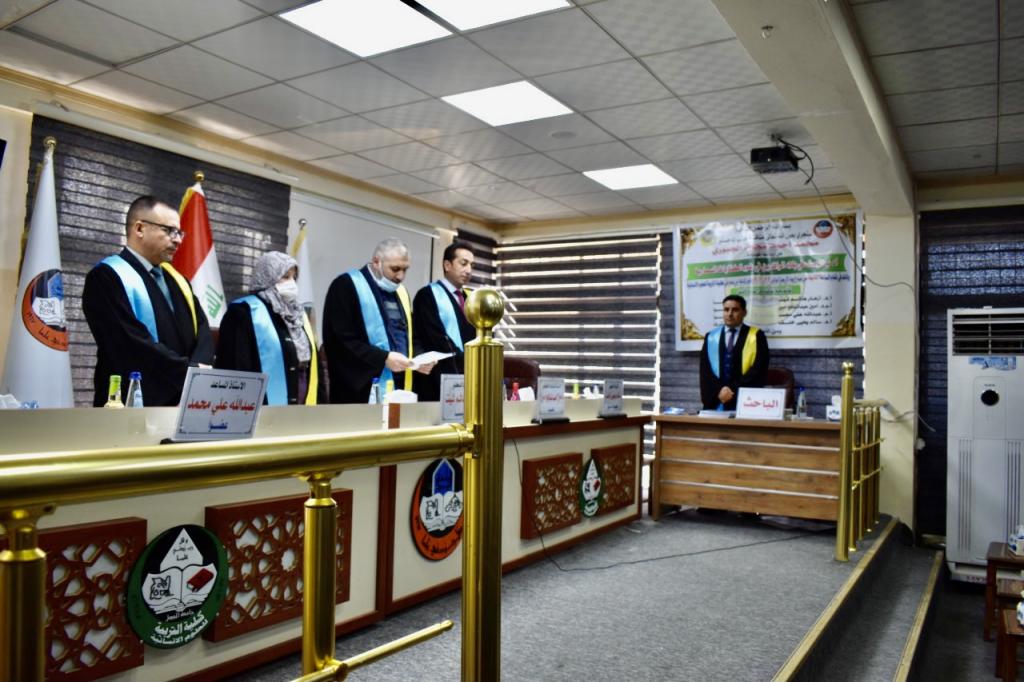 أ.د. سالم يحيى خلف عضوا ومشرفاتم اجراء المناقشة بأجواء علمية واستمعت فيها اللجنة الى دفاع الطالب عن رسالته.