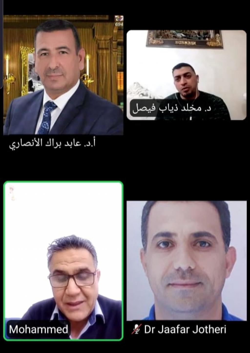 حضرت السيدة عميد كلية الاثار أ.م.د ياسمين عبد الكريم المحترمة، اجتماع لجنة عمداء كليات الآثار مساء يوم الاثنين الموافق ٢٥/ ١/ ٢٠٢١م، وعبر منصة zoom وبحضور جميع السادة عمداء كليات الآثار.وتناول الاجتماع اهم الامور المطروحة على جدول اعماله.