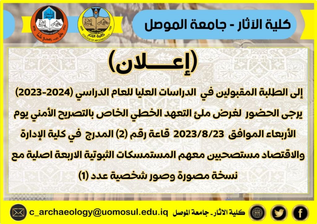استضافت كلية الآثار جامعة الموصل برئاسة عميد كلية الآثار الأستاذ المساعد الدكتورة ياسمين عبد الكريم محمد علي عمداء كليات الاثار في العراق يوم الخميس الموافق ١٧ آب ٢٠٢٣