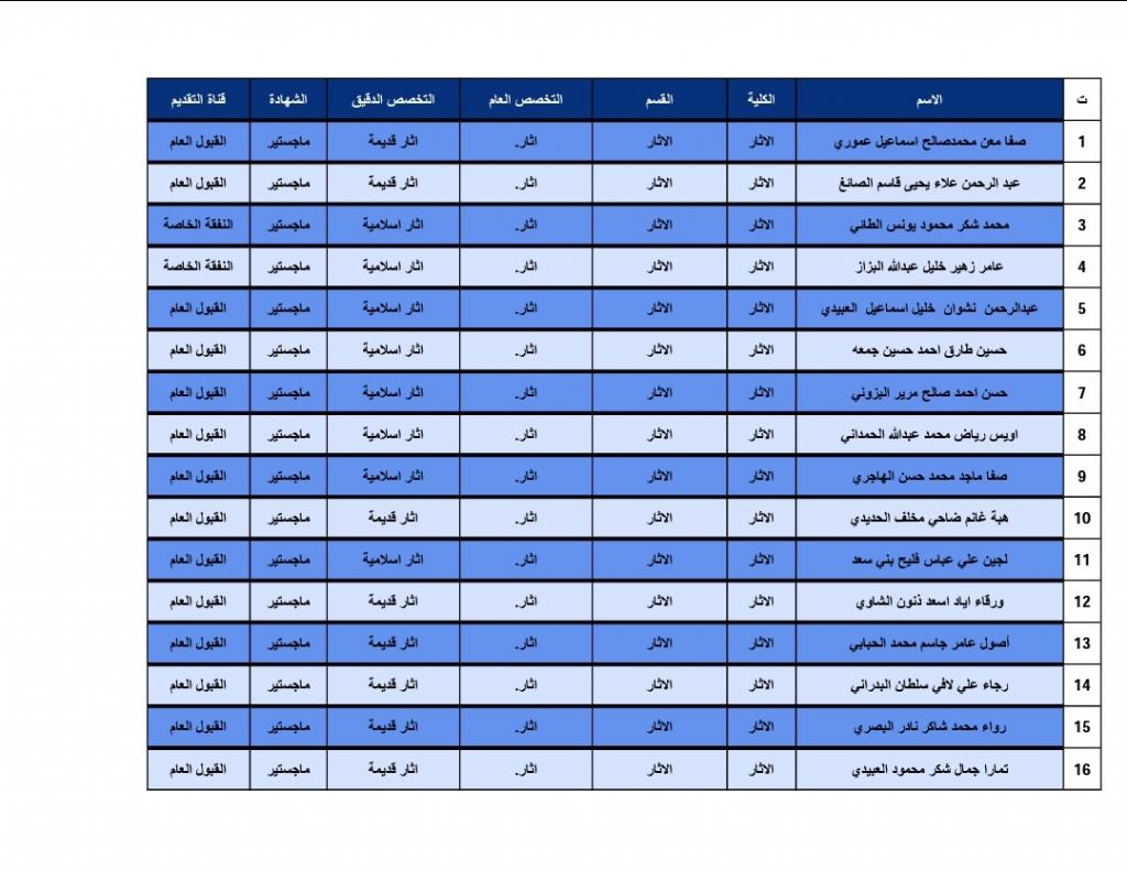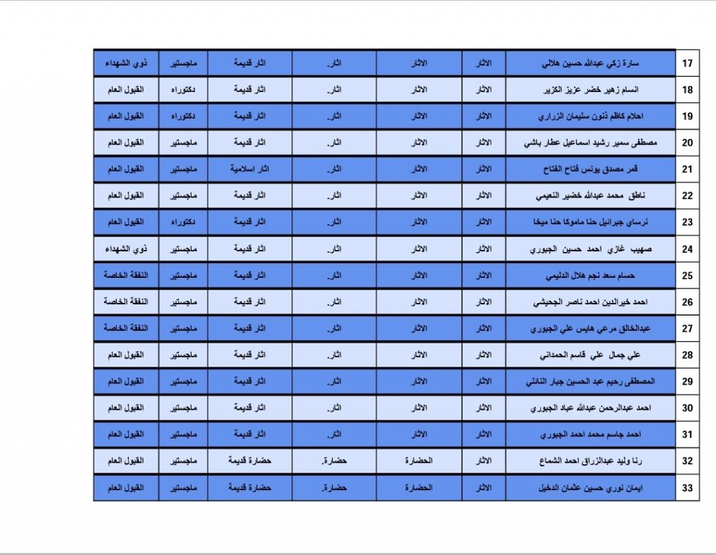 اعلان اسماء المتقدمين للدراسات العليا المؤهلين لإداء الامتحان التنافسي