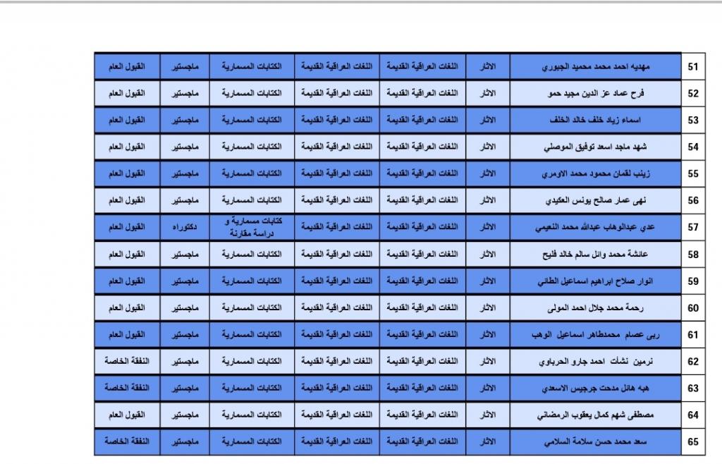 الى المتقدمين للدراسات العليا في كليتنا نرفق لكم ادناه اسماء المتقدمين المؤهلين لإداء الامتحان التنافسي للقبول في الدراسات العليا للسنة الدراسية (2022-2023) والذي سيجري يوم الاربعاء الموافق 2022/5/18حسب التوقيت المحددة من قبل وزارة التعليم العالي والبحث العلمي .ملاحظة :1- على المتقدم جلب نسخة ملونة من باركود التقديم (الاستمارة الالكترونية) المدقق والمختوم الكترونياً.2- على المتقدم جلب هوية تعريفية لمطابقتها مع الباركود.