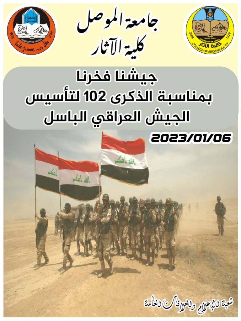 تقيم كلية الآثار / وحدة التعليم المستمرورشة عمل بعنوان(الإسعافات الأولية والوقائية للممتلكات الثقافية وقت الاخطار)يلقيها م.د. عمر جسام فاضل التدريسي في قسم الآثاريوم الأربعاء الموافق 2023/01/10 الساعة العاشرة صباحاًعلى قاعة الدكتور بهنام أبو الصوف في كليتنا