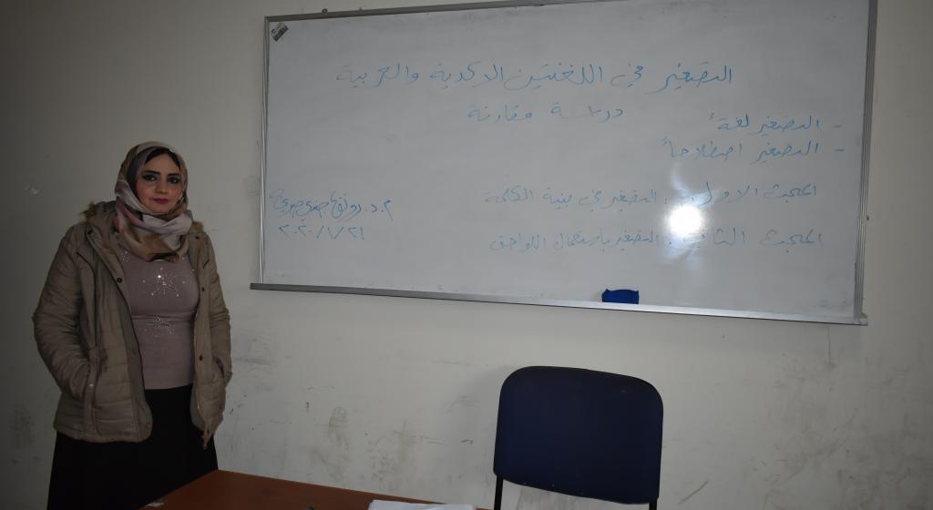 ضمن النشاطات العلمية لقسم اللغات العراقية القديمة اقام القسم حلقة نقاشية تحت عنوان (التصغير في اللغتين الأكدية والعربية دراسة مقارنة) للمدرس الدكتورة رونق جندي صبري التدريسية في القسم بحضور عدد من الأساتذة والموظفين وطلبة الدراسات العليا يوم الثلاثاء الموافق 2020/1/21 .