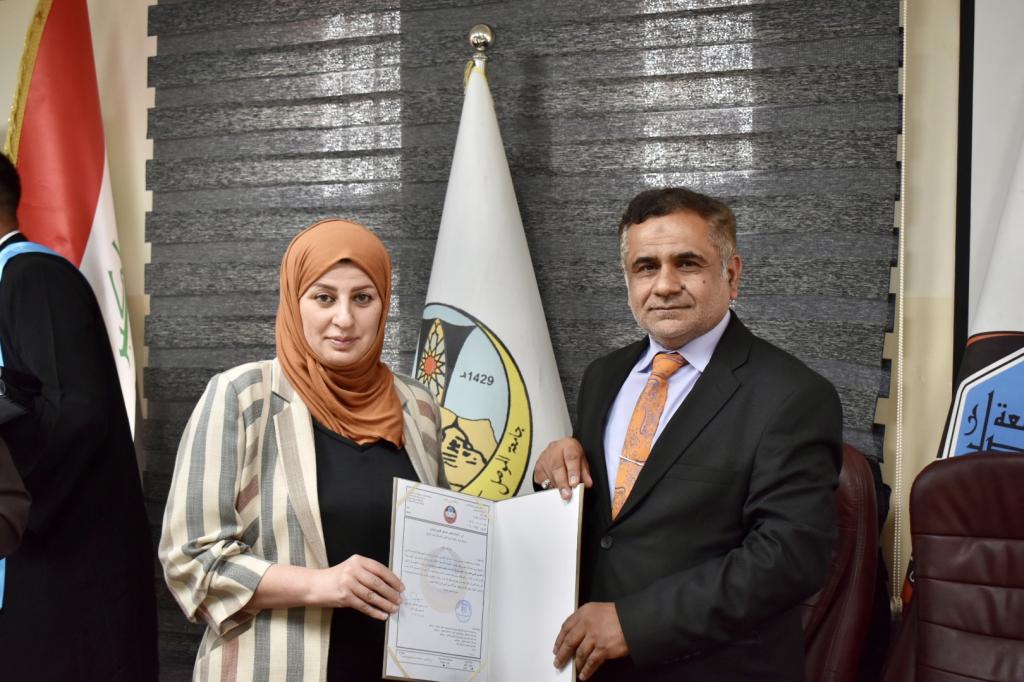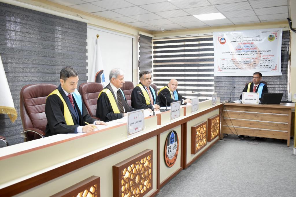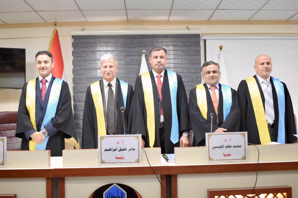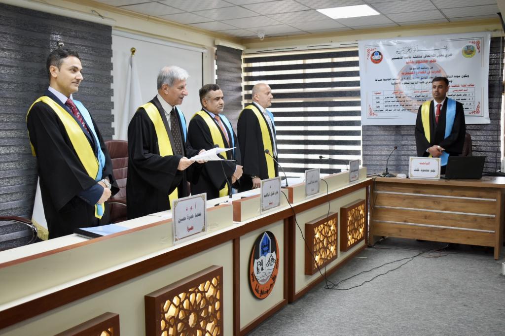تمت مناقشة رسالة الماجستير للباحث نجم محمود خلف في قسم الاثار والموسومة(العرب في المصادر المسمارية) صباح يوم الاربعاء الساعة التاسعة في قاعة ابي تمام /كلية التربية الانسانية تالفت اللجنة كل من :
