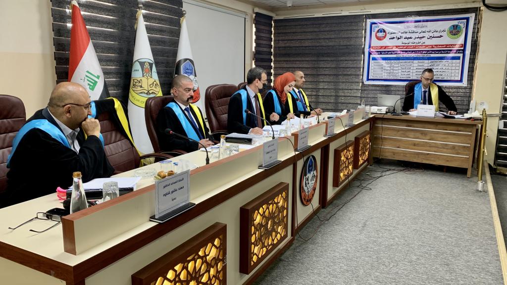 تمت مناقشة اطروحة الدكتوراه للباحث حسنين حيدر عبد الواحد في قسم اللغات العراقية القديمة والموسومة(الكتابات المسمارية على طبعات اختام الموظفين في عصر اور الثالثة) صباح يوم الاثنين الساعة التاسعة في قاعة ابي تمام /كلية التربية الانسانية تالفت اللجنة كل من :