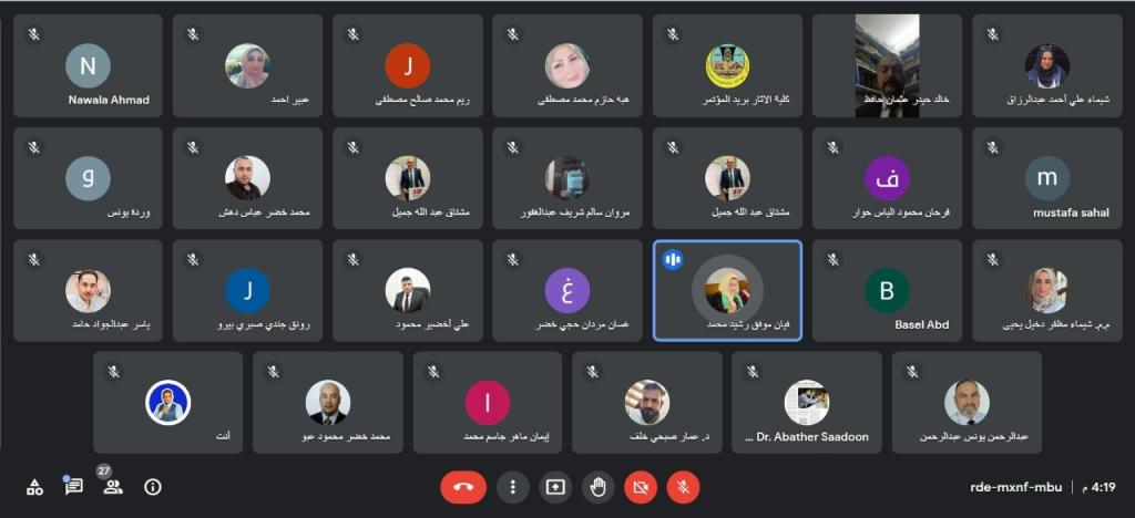 برعاية الدكتور نعيم العبودي المحترم معالي وزير التعليم العالي والبحث العلميوبأشراف الاستاذ الدكتور قصي كمال الدين الأحمدي المحترم رئيس جامعة الموصلوبمتابعة الاستاذ المساعد الدكتورة ياسمين عبدالكريم محمد علي المحترمة عميد كلية الآثاروتحت شعار (حضارة بلاد الرافدين الأصالة والتأثير)اقامت كلية الآثار مؤتمرها الدولي الثالث الموسوم(عمارة وفنون العراق – مظاهر التأثير والتأثر عبر العصور) لليوم الأول الثلاثاء الموافق 27 كانون الأول 2022 م عبر الفضاء إلكترونيا و على منصة Google Meetتخلل اليوم الثاني جلستين للحوار والمناقشة بدأت الساعة الرابعة مساءً الى الساعة السابعة مساءًترأسها أ.م.د. خالد حيدر عثمان وكان مقررها أ.م.د. فرحان محمود ألياسنوقش فيها (11) بحث مقبول في المؤتمر