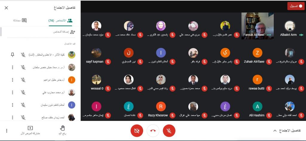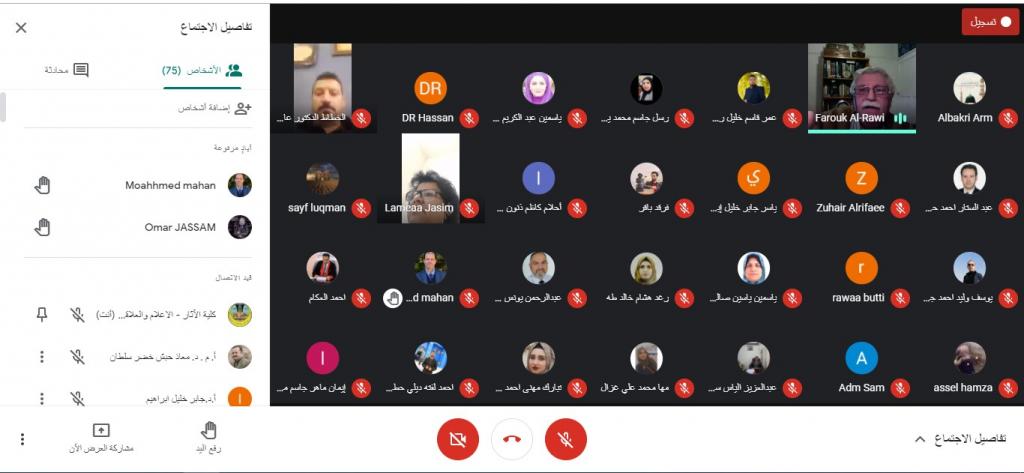 برعاية الأستاذ الدكتور قصي كمال الدين الأحمدي رئيس جامعة الموصل المحترمو بأشراف أ.م.د. ياسمين عبدالكريم محمد علي عميد كلية الآثار المحترمة ،اقامة كلية الآثار وحدة التعليم المستمر ورشة العمل الموسومة (المدرسة العراقية في دراسة آثار وحضارة بلاد الرافدين – روادها ونتاجها)القاها الاستاذ الدكتور محمد عبدالغني البكري يوم الأثنين الموافق 29/3/2021 الساعة الثامنة مساءًعبر الفضاء الإلكتروني على منصة Google Meetبين فيها الباحث اهم رواد المدرسة العراقية ونتاجها .