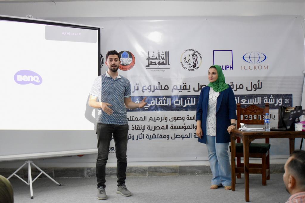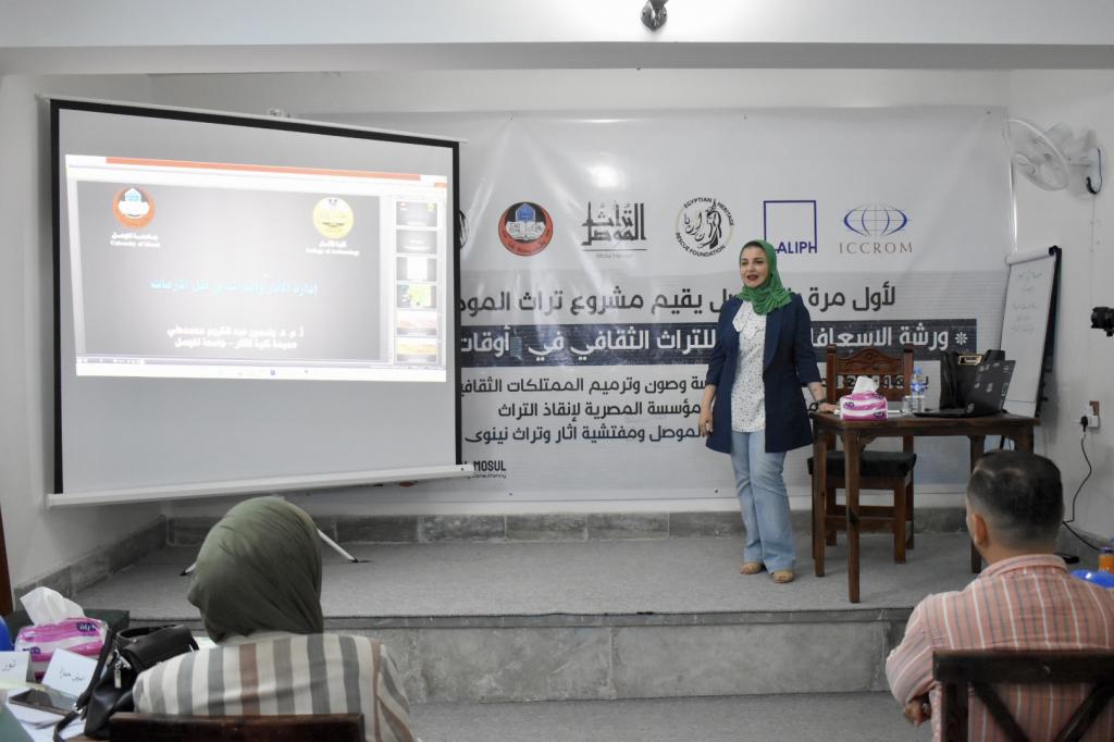شاركت أ.م.د ياسمين عبد الكريم عميد كلية الاثار في محاضرة علمية بعنوان (ادارة الاثار والتراث في ضل الازمات) مدينة النمرود وكنيسة الطاهرة انموذجا في الورشة المقامة في بيت التراث الموصلي يوم الاربعاء الموافق 29/6/2022 بالتعاون مع منظمة اكروم ومنظمة إلف والمؤسسة المصرية لإنقاذ التراث ومفتشية اثار وتراث نينوى على مجموعة من المتدربين في الورشة الموسومة (الاسعافات الاولية للتراث الثقافي في اوقات الازمات).تحدثت عن كيفية ادارة المواقع الاثرية والتراثية في اثناء الحروب والازمات والكوارث وماهو دور المجتمع للحفاظ على تلك المواقع من السرقة والتجريف والاهمال والتدمير وعدم التصرف بدون معرفة والتواصل مع الجهات المعنية من دوائر امنية ومفتشية الاثار والتراث لكي تبقى المعالم الاثارية شاخصة ومعلومة لانها تمثل روح المدينة وتاريخها.