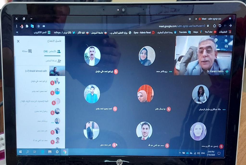 تفقد السيد مساعد رئيس جامعة الموصل للشؤون العلمية الاستاذ الدكتور منير سالم طه سير الامتحانات الإلكترونية النهائية في كليتنا بحضور الأستاذ المساعد الدكتورة ياسمين عبدالكريم محمد علي عميد الكلية ، انظم البدراني عبر برنامج Google meet مع الطلبة الممتحنين وتفقد سير الامتحانات والقى خلال لقائه بالطلبة كلمة تشجيعية ، وأشاد بدور عمادة الكلية واللجان الامتحانية واللجان الساندة في تسيير عجلة الامتحانات النهائية ، كما تمنى في نهاية اللقاء الموفقية والنجاح لجميع الطلبة .
