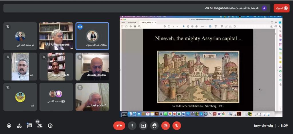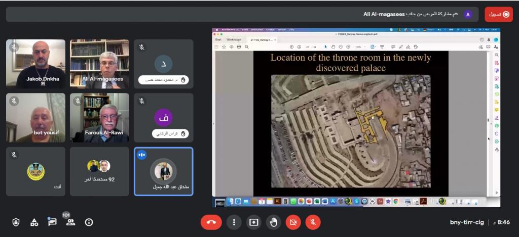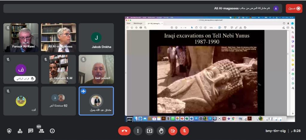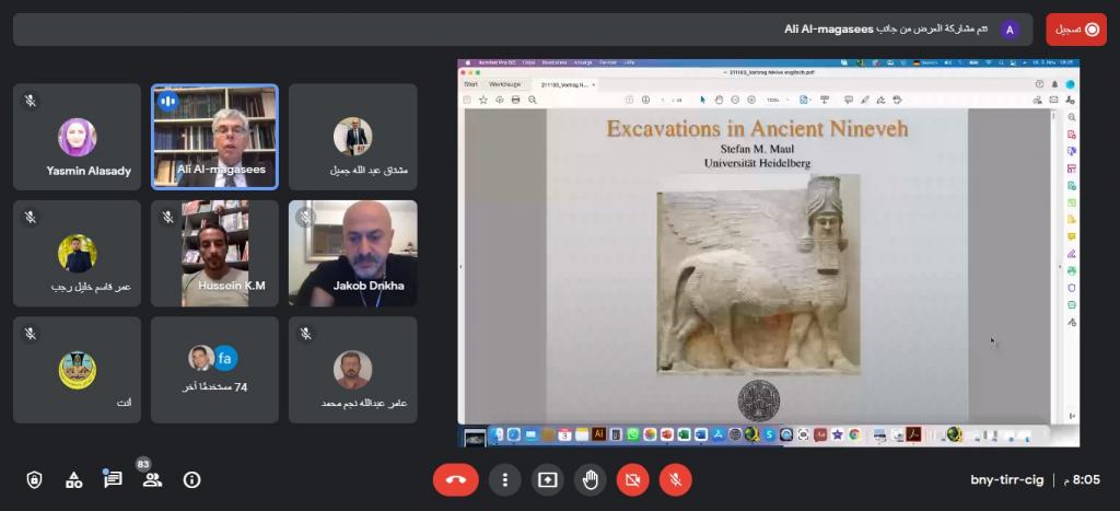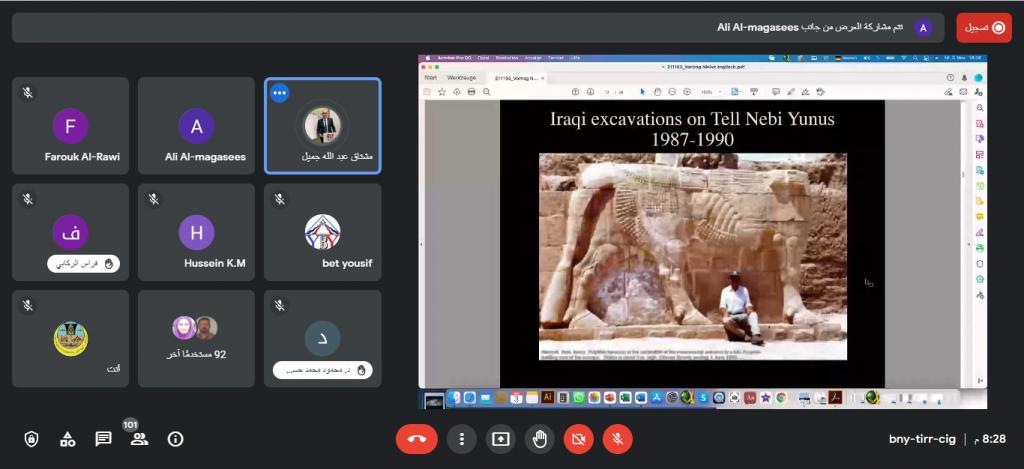 اقامة كلية الآثار محاضرة علمية بعنوان (تنقيبات جامعة هايدلبيرغ لموقع تل النبي يونس في محافظة نينوى)القاها البروفيسور (استيفان ماول) مديرمشروع تنقيبات غرب نينوى ومدير معهد الاشوريات بجامعة هايدبيرك الألمانيةيوم الاربعاء الموافق 2021/11/3 الساعة الثامنة مساءً عبر الفضاء الإلكتروني وعلى منصة Google Meetبين فيها البروفيسور ماول التنقيبات الاخيرة التي اجريت على تل النبي يونس وحجم الدمار الذي تعرضت لهوالاكتشافات الجديدة والانفاق التي حفرت تحت جامع النبي يونسبحضور عدد من الاساتذة والباحثين والمهتمين بالشأن الآثاري