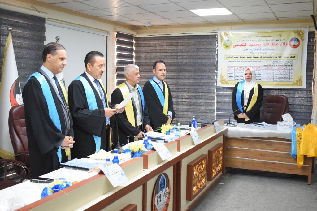 ناقش قسم الآثار رسالة الماجستير الموسومة خطط المباني الإدارية والحكومية في مدينة الموصل نهاية العصرالعثماني .صباح يوم الخميس الموافق 29/9/2022 في قاعة ابي تمام ،للباحثة ولاء عطا الله محمود النعيمي .تناولت الرسالة في الحديث عن بدايات نشوء و تطور دور الحكم والإدارة في مدينة الموصل خلال العصور العربيةوالإسلامية بداء بتشكيل اول دار إمارة على عهد الخليفة الفاروق عمر بن الخطاب في مدينة الموصل سنة 16 هجرية في منطقة قليعات القديمة ثم تحولها إبان العصر الاموي الى قصر المنقوشة التي شيدها الاموين في مركزمدينة الموصل القديمة ونقلوا إليها كافة دواوين الدولة الإدارية والسياسية والعسكرية والأمنية والخدمية والماليةوالقضائية ثم تحولها إبان العصر العباسي عند مسجد النبي جرجيس واتساع وظائفها الإدارية والمدنية ثمانتقالها مطلع العصر العثماني عند ملة الميدان قبالة باب الجسر القديم حيث شيد العثمانيون القلعة الداخليةالشهيرة بايج قلعة و نقلوا إليها كافة مراكز الدولة ودواوينها الإدارية والعسكرية والأمنية والخدمية والقضائيةوالمالية ..ومع قدوم حكم الأسرة العربية الجليلية بداء انشاء سراي الباشا والمنظمن لمركز الإدارة والقيادة في مدينةالموصل .وباعلان الحكم العثماني الرسمي المركزي في البلاد بدأ انشاء مراكز خاصة لإدارة الدولة و دواوينها كافةعلى عهد والي الموصل الباشا محمد اينجة البيرقدار عند محلة باب الطوب جنوب مدينة الموصل القديمة حيث انشاءالقشلتين العسكرية والمدنية والتي لاتزال اثارهما شاخصة إلى يومنا هذا.ترأس لجنة المناقشة الأستاذ الدكتور إبراهيم حسين الجبوريوعضوية الأستاذ المساعد الدكتور فواز موفق ذنونوالاستاذ المساعد الدكتور هيثم قاسم محمدوعضوية وإشراف الأستاذ المساعد الدكتور أكرم محمد يحيى