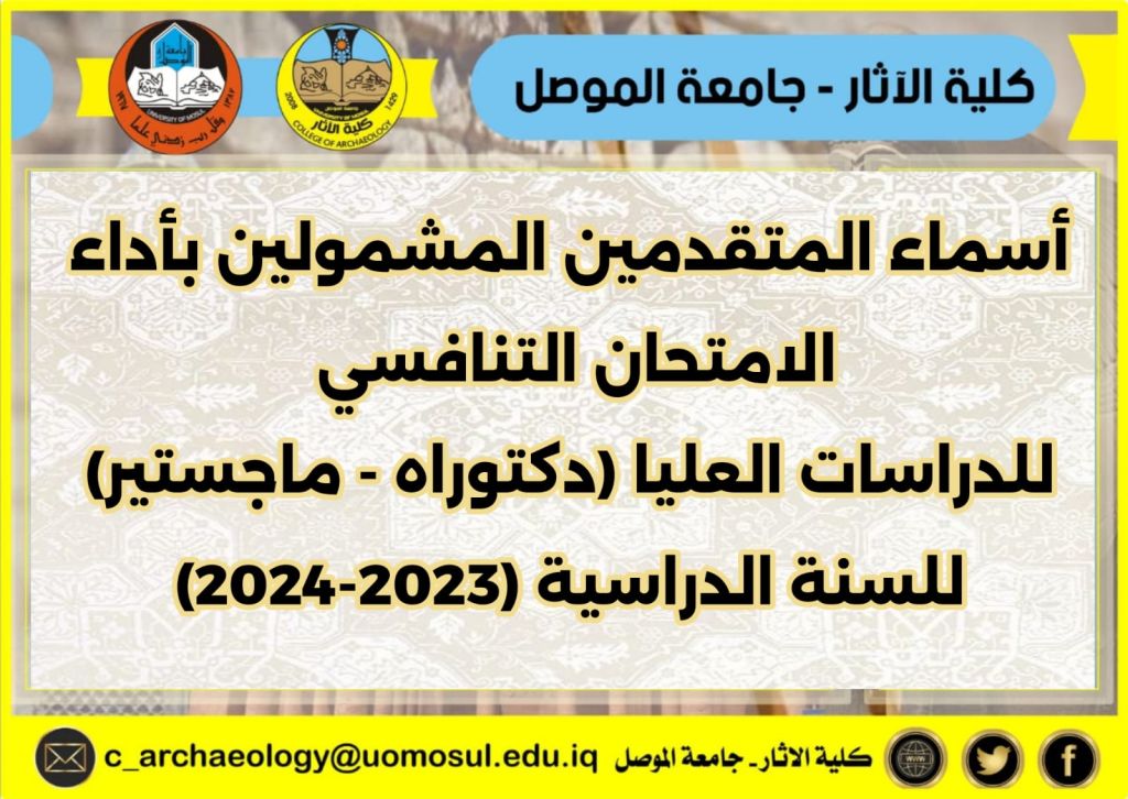 أسماء المتقدمين المشمولين بأداء الامتحان التنافسي للدراسات العليا للسنة الدراسية (2023-2024)