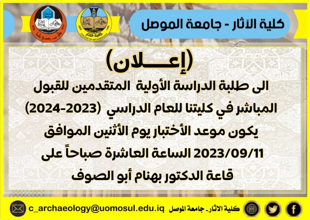 ناقش قسم الحضارة في كلية الاثار بجامعة الموصل رسالة الماجستير الموسومة ( تلعفر في العصور القديمة (من عصور قبل التاريخ الى نهاية العصر البابلي القديم) يوم الاحد ١٠ ايلول 2023 وعلى قاعة الدكتور بهنام ابو الصوف في الكلية ، حضر جانباً منها الأستاذ المساعد الدكتور ياسر جابر خليل معاون العميد للشؤون العلمية وعدد من تدريسيي الكلية .