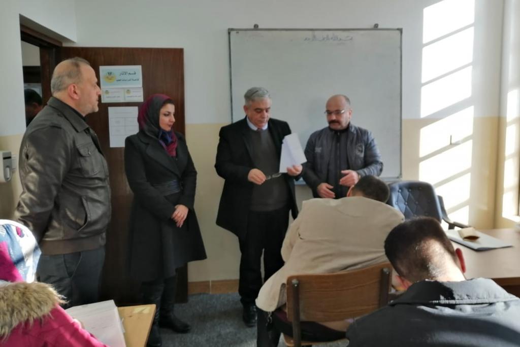 زار الأستاذ الدكتور منير سالم طه مساعد رئيس الجامعة للشؤون العلمية كلية الآثار يوم الأحد الموافق 2020/1/12 الساعة التاسعة صباحاً لتفقد سير امتحانات الفصل الأول الدور الأول لطلبة الدراسات العليا (دكتوراه و ماجستير) وتجول سيادته برفقة الأستاذ المساعد الدكتورة ياسمين عبدالكريم محمد علي عميد كلية الآثار القاعات الأمتحانية وتفقد الطلبة والاستماع الى متطلباتهم