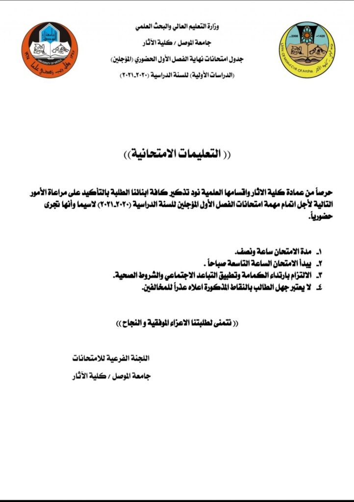 ضمن نشاطات كلية الاثار في المواقع الاثرية والتراثيةزارت السيدة عميد كلية الاثار (الجامع الاموي) بالتعاون مع مفتشية الاثار وتراث نينوى وهي سلسة المواقع التي سيتم دراستها من مشروع حفظ التراث المجتمعي حيث تم دراسة المواقع بشكل اولي وكيفية وصف الموقع بشكل دقيق هندسي واثري وتم كتابة تفاصيل الصور والملاحظات التي ستم لاحقا تدوينها بالقياسات الدقيقة.علما ان جامع المصفي كما يعرف بالجامع الاموي هو اقدم جامع الموصل أُسس سنة 16هـ .