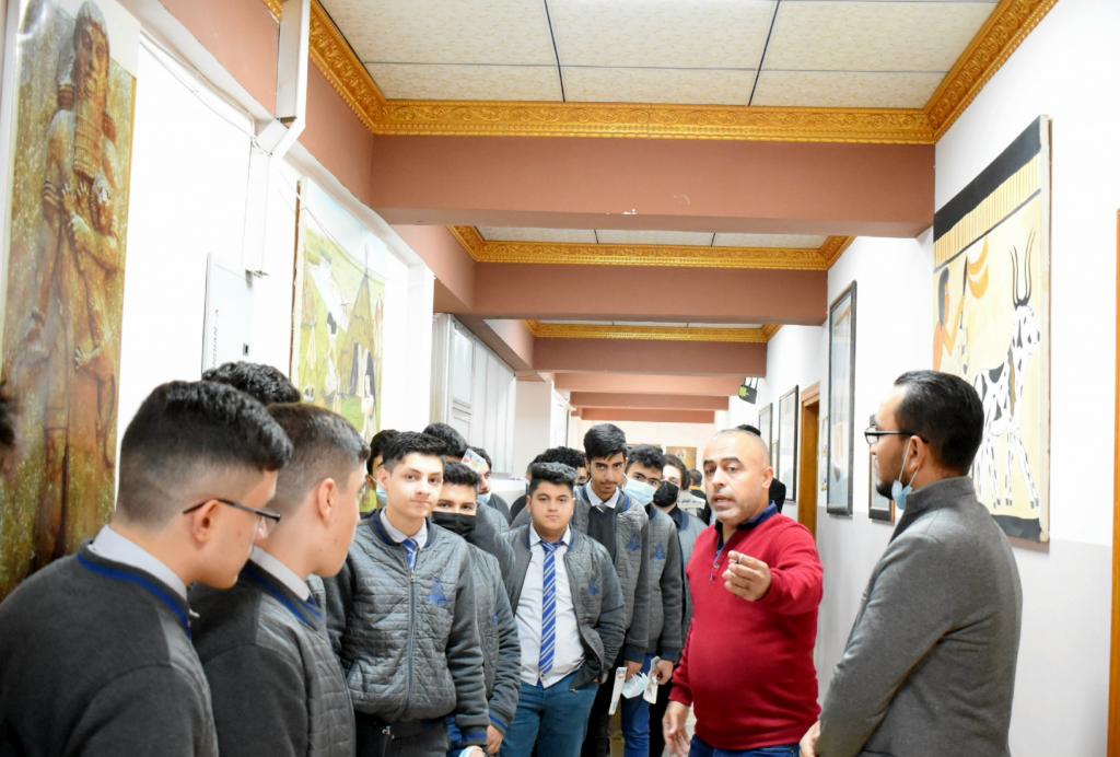 استضافة كلية الآثار متمثلة بالسيدة أ.م.د ياسمين عبد الكريم عميد الكلية ،طلبة ثانوية الأوائل الأهلية صباح يوم الأربعاء الموافق 2021/12/8 على اروقتها ضمن مبدأ التعاون بين جامعة الموصل والمديرية العامة للتربية في محافظة نينوى تم اطلاع الطلبة وتعليمهم على آثار وحضارات العراق واللغات القديمة من قبل أساتذة الكلية واطلاعهم على بعض نماذج القطع الأثرية واللوحات والمنحوتاتفي القاعات الدراسية واروقة الكلية متمنين لهم النجاح والتوفيق في مسيرتهم الدراسية كونهم قادة المستقبل