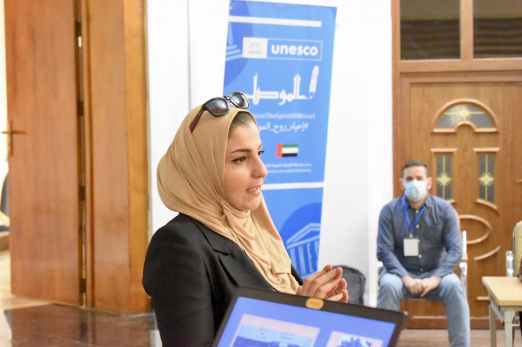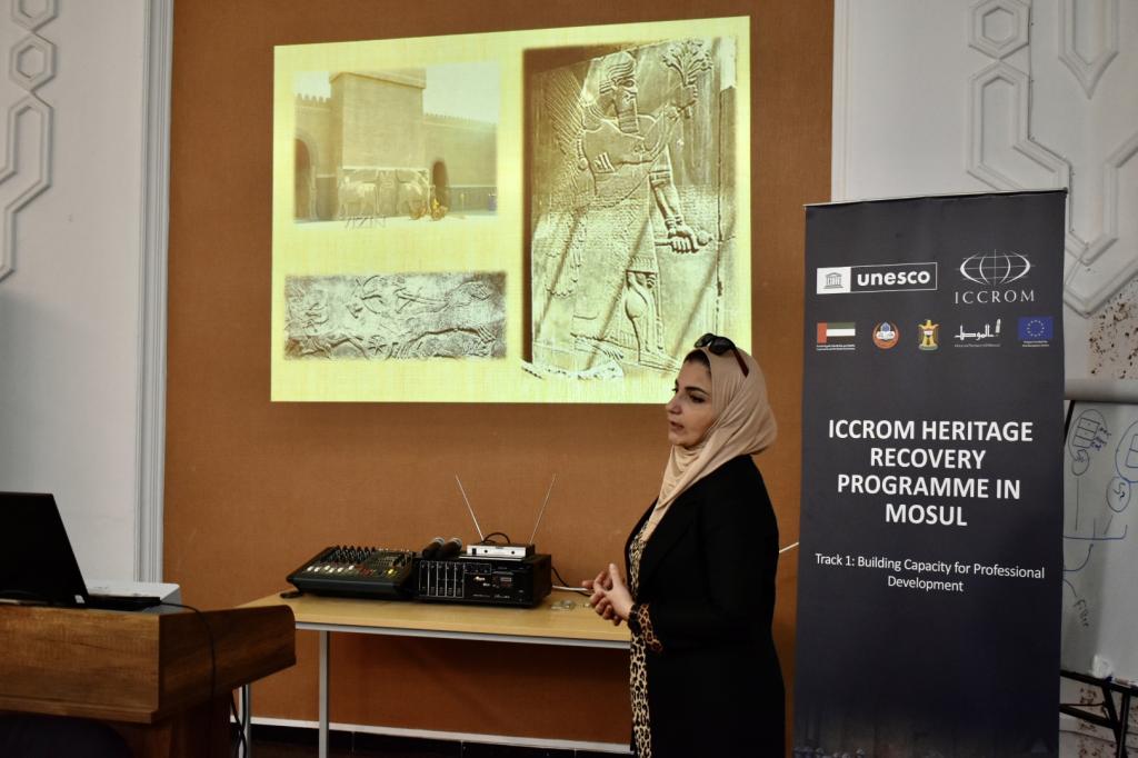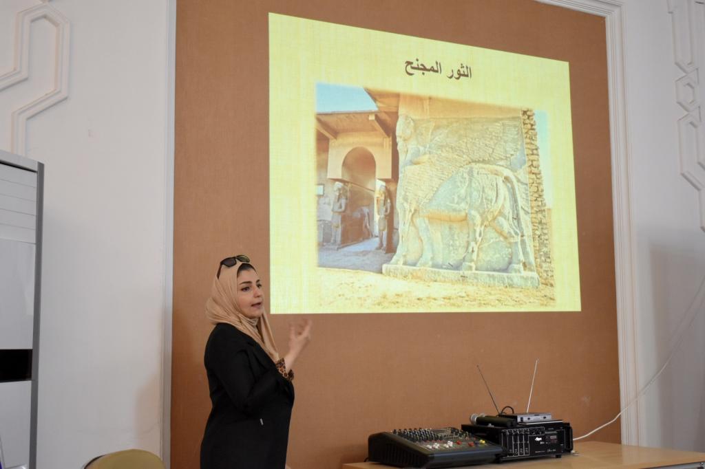 القت السيدة أ.م.د. ياسمين عبد الكريم محمد علي محاضرة علمية بعنوان ( مدينة نينوى الاثرية)في قاعة المنتدى العلمي صباح يوم الاربعاء الموافق 6/4/2022 بالتعاون مع منظمة ايكروم ضمن البرنامج التدريبي (استعادة التراث في الموصل) .تحدثت فيها عن العواصم الاشورية الاربعة وتاريخ تعاقب تلك الحقبة الزمنية وكيفية بناء وتصميم المدن والدور السكنية والابنية الخدمية العامة ،فضلا عن كيفية وضع الثيران المجنحة على جدران والمنحوتات الاثرية.