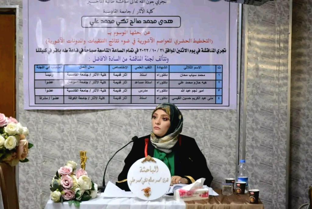 مشاركة أ.م.د. هبة حازم محمد في عضوية مناقشة رسالة الماجستيرالموسومة(التخطيط الحضري للعواصم الآشورية في ضوء نتائج التنقيبات والمدونات الآشورية)للباحثة هدى محمد صالح تكيمن جامعة القادسية / كلية الآثار/ قسم الآثارو تألفت لجنة المناقشة من :أ . د . محمد سياب محان جامعة القادسية رئيساًأ.م.د. هبه حازم محمد جامعة الموصل / كلية الآثار عضواًم.د. امير نجم عبد الله جامعة القادسية عضواًأ .د. منى عبد الكريم حسين القيسي جامعة الكوفة عضواً و مشرفاً