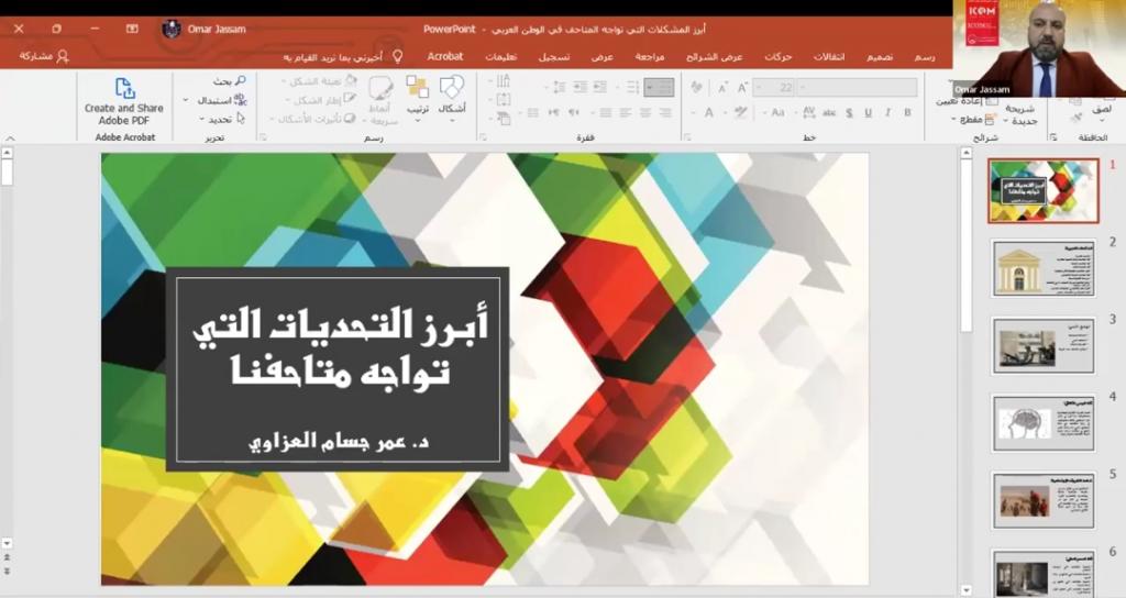 مشاركة الدكتور عمر جسام العزاوي التدريسي في قسم الآثار في ندوة دولية افتراضية عن (المتاحف بين الإقبال والعزوف)