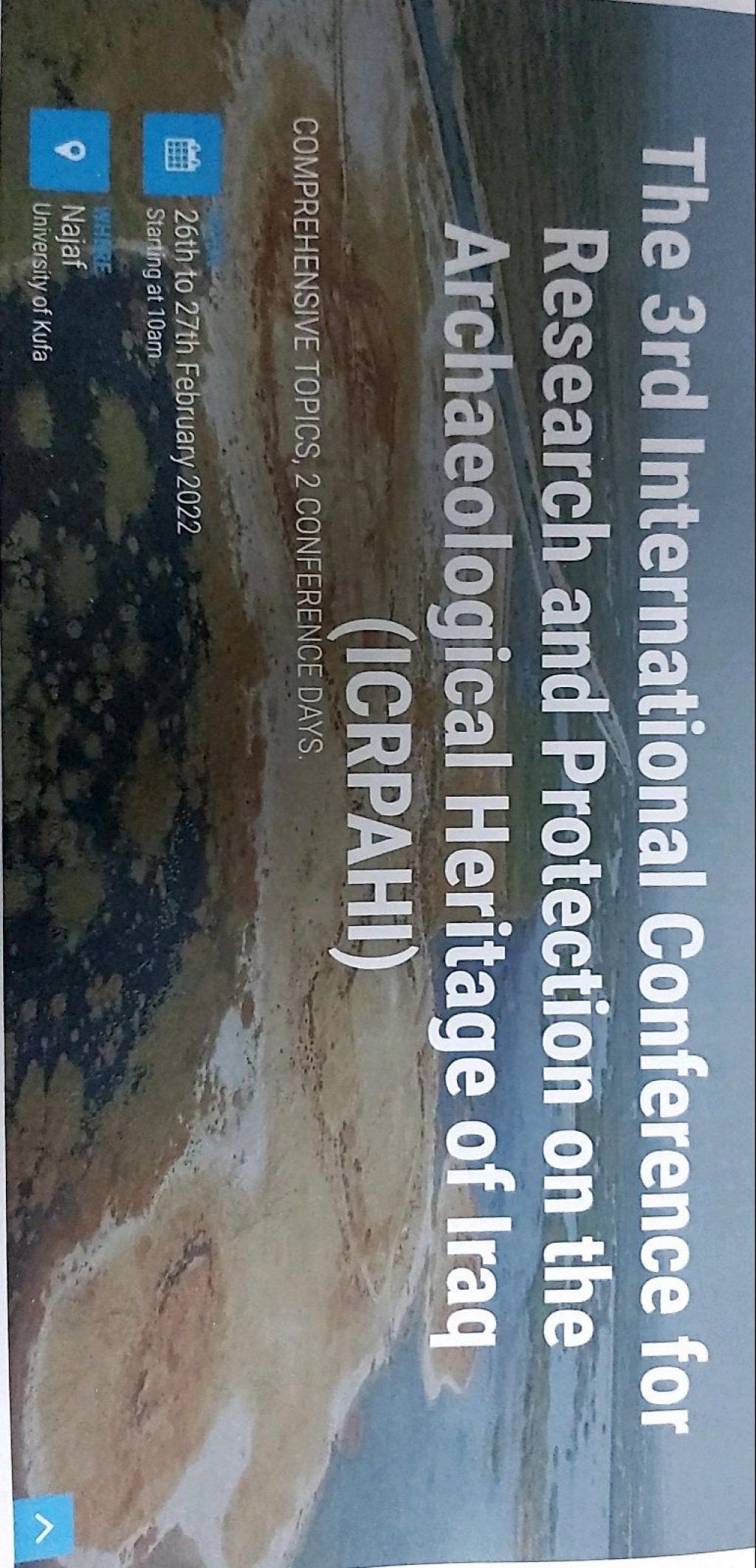 شاركت التدريسيتان م.م. شيماء مظفر دخيل و م.م. عبير أحمد جاسمفي المؤتمر العلمي الدولي الثالث لدراسة وحماية الآثار العراقيةوالذي أقيم في رحاب جامعة الكوفة يومي 26 و 27 شباط 2022