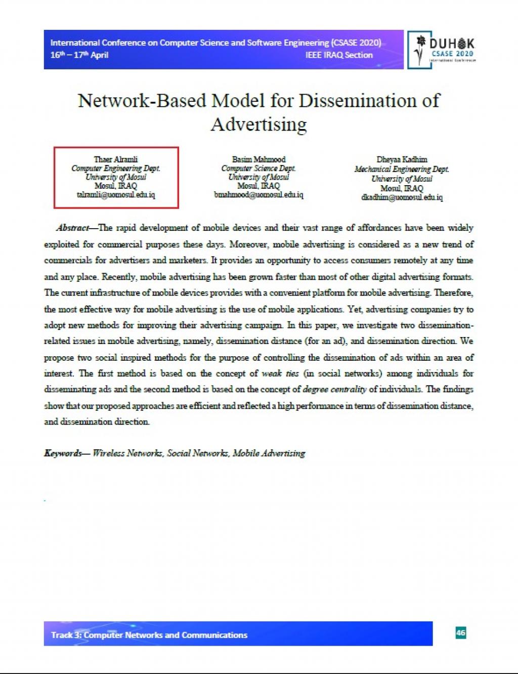 حيث عقد المؤتمر بتاريخ 16-17/4/2020 في جامعة دهوك