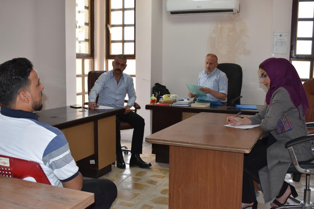 جرت في كلية الاثار اليوم الثلاثاء الموافق 20/10/ 2020 مقابلة الطلبة المتقدمين للدراسات العليا لمرحلتي الماجستير والدكتوراه للعام الدراسي 2020_2021 وذلك بعد الانتهاء من اداء الامتحان التنافسي حيث تمت المقابلة من قبل لجان الأقسام العلمية الثلاثة .